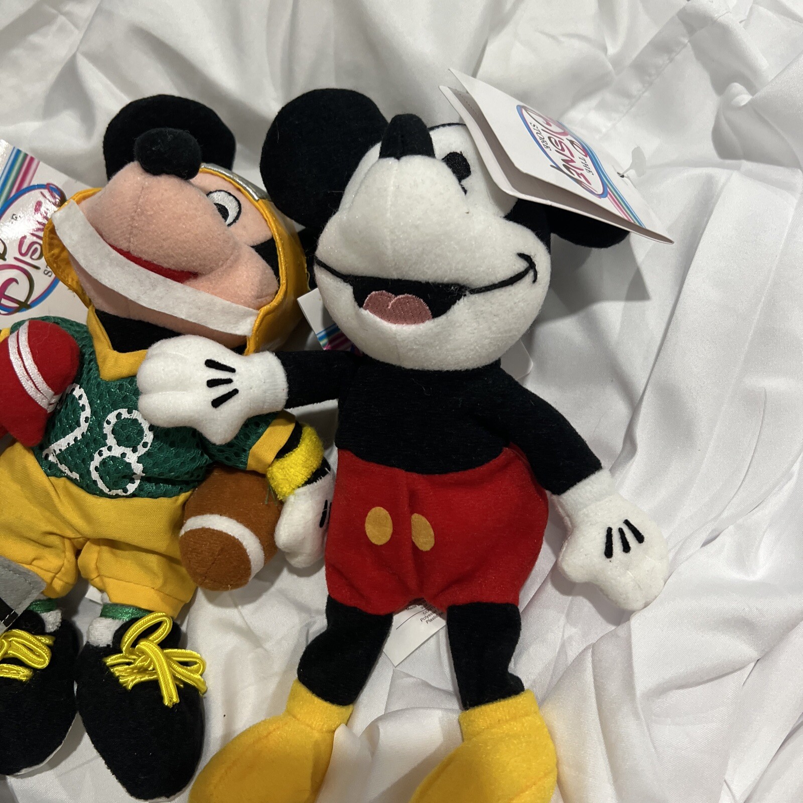 • Disney 1930's Mickey Mouse Mini Bean Bag Plush 9" Lot Of 3 Football, Hockey
