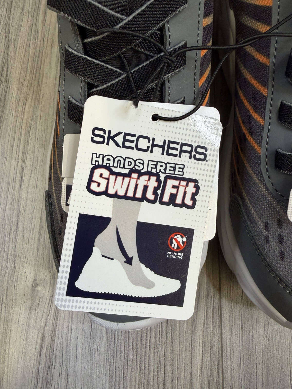 как выглядит Skechers Swift Fit Hands Free Slip On Kids Sneakers Black Orange Size 13 NEW фото