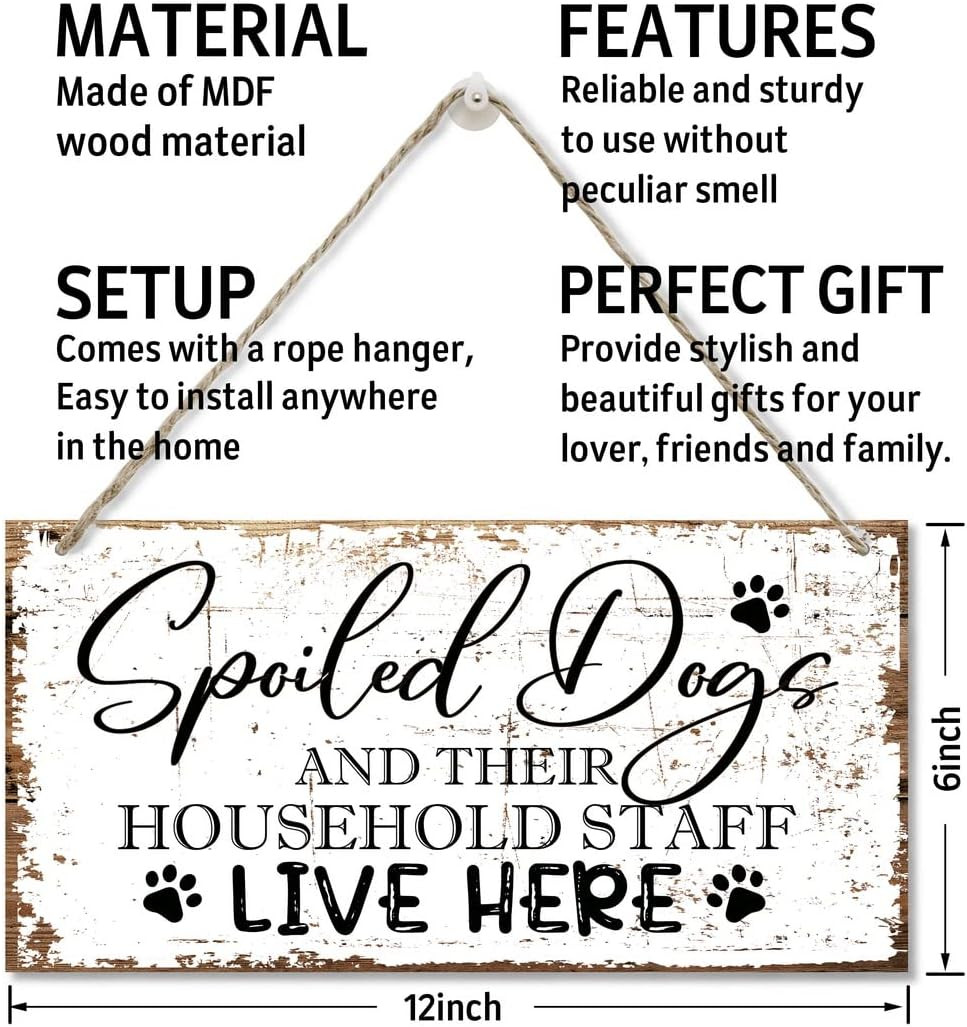 Spoiled Dogs and Their Staff Live Here Sign, Printed Wood Plaque Signs, Hanging