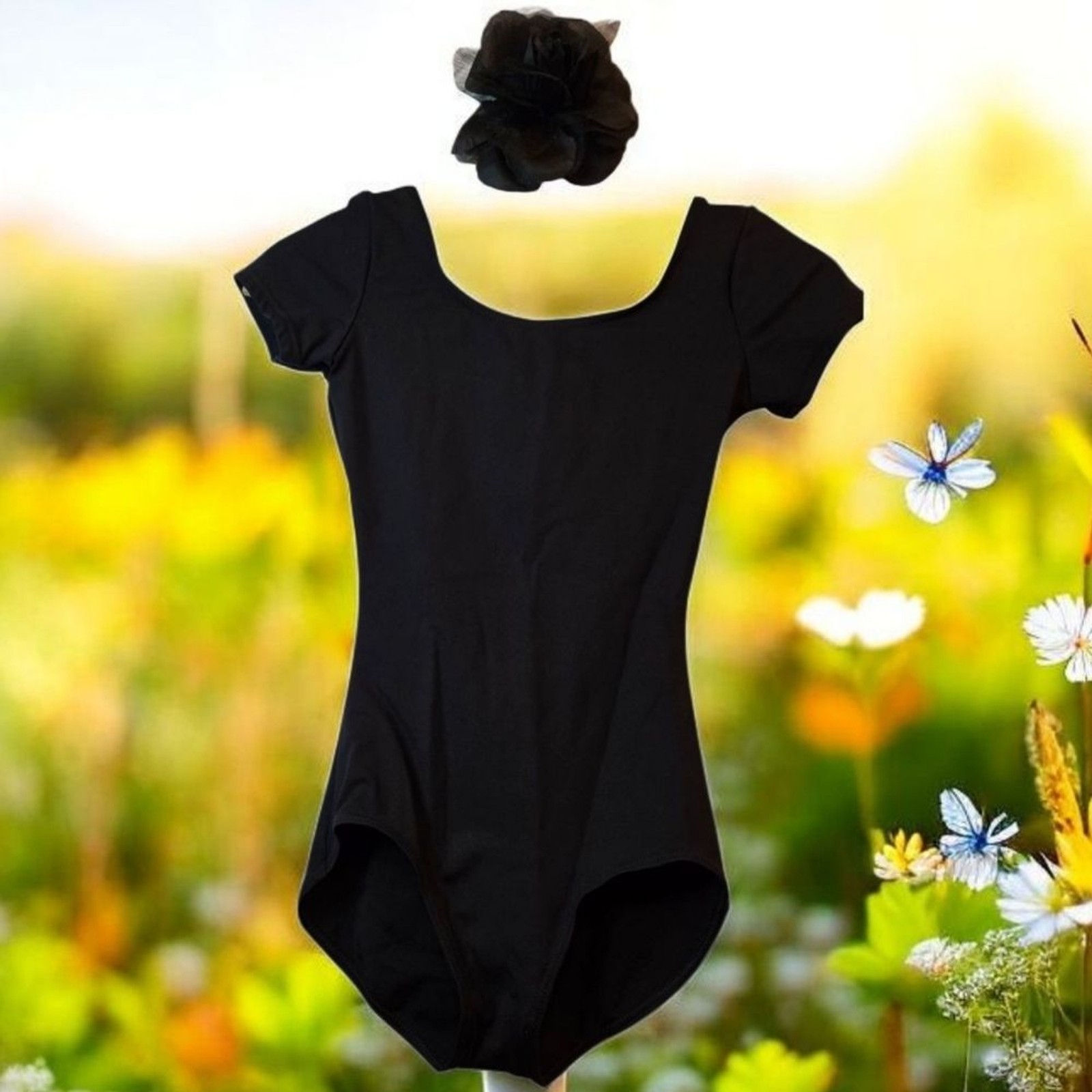 Capezio Women's Short Sleeve Black Classic Leotard Scoop Neck Balletcore Size S