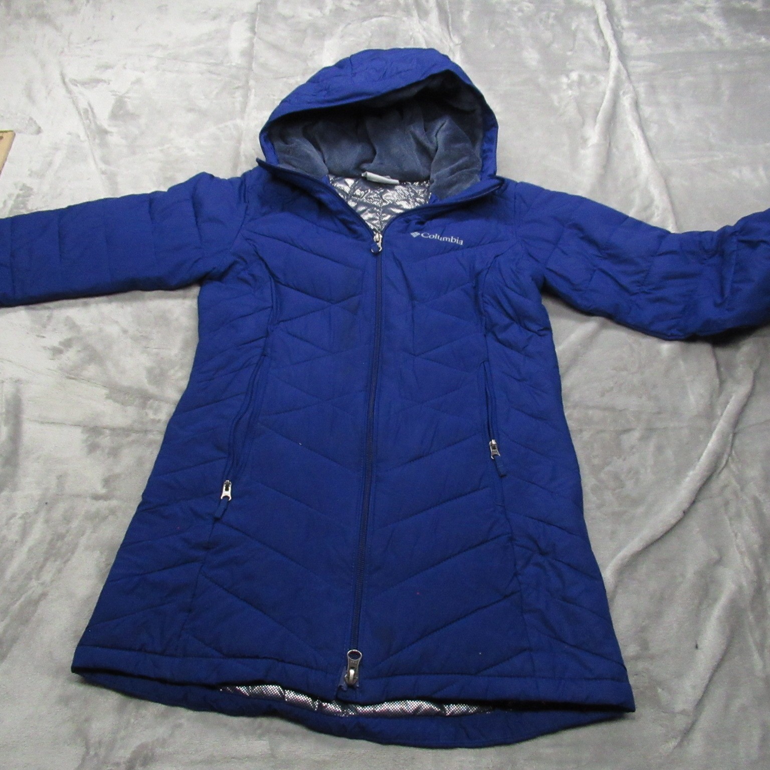 как выглядит Columbia Parka Jacket Kids Medium 10/12 Blue Omni Heat Thermal Interchange Hood фото