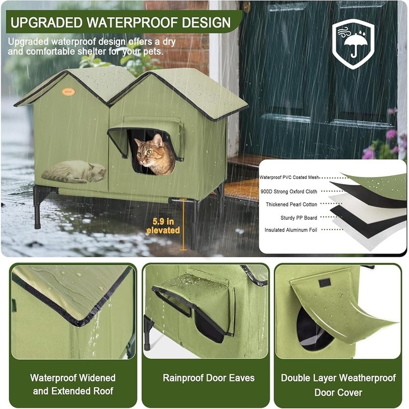 Outdoor Heated Cat House Feral Cats Insulated Winter Shelter W/ Escape Doors New