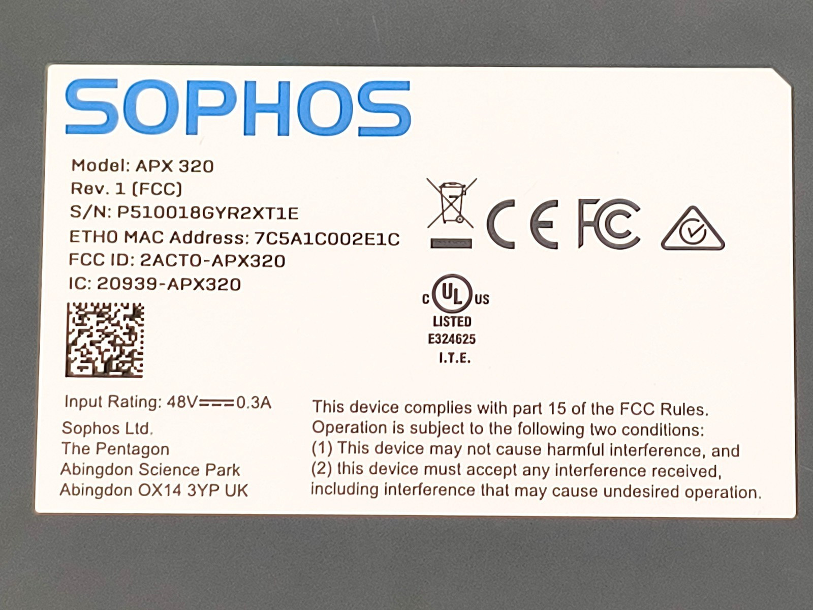 SOPHOS APX 320 WIRELESS ACCESS POINT 802.11AC WAVE 2 MU-MIMO POE USED EXCELLENT