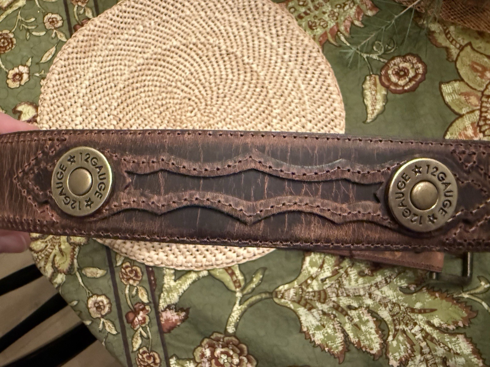 AndWest 12 Gauge Gold Concho Belt 32 Waist Brown Genuine Leather 1 1/2 Wide EUC