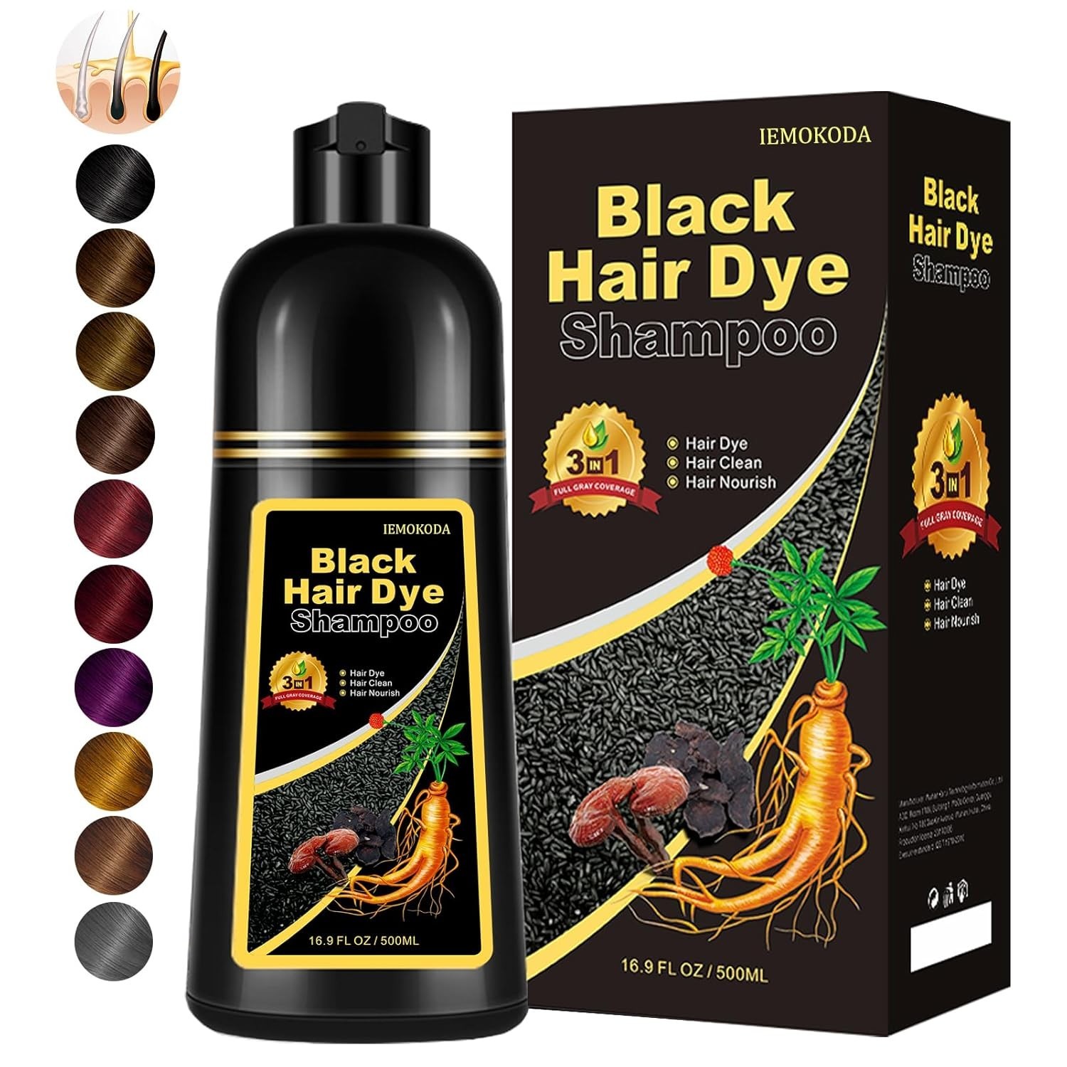 как выглядит Instant Black Hair Dye Shampoo, Natural 3-in-1 for Gray Coverage in 10-15 min... фото