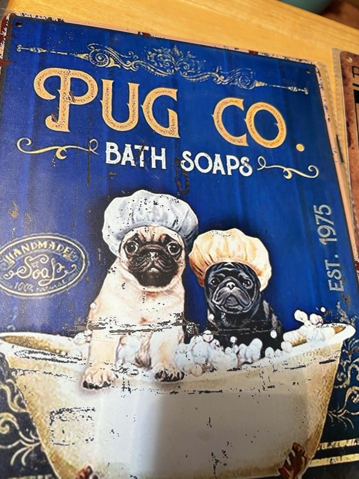 как выглядит 2 New Pug black -Fawn 8x12 Metal Wall Signs Pug Bath Soaps Pug Care Knowledge фото
