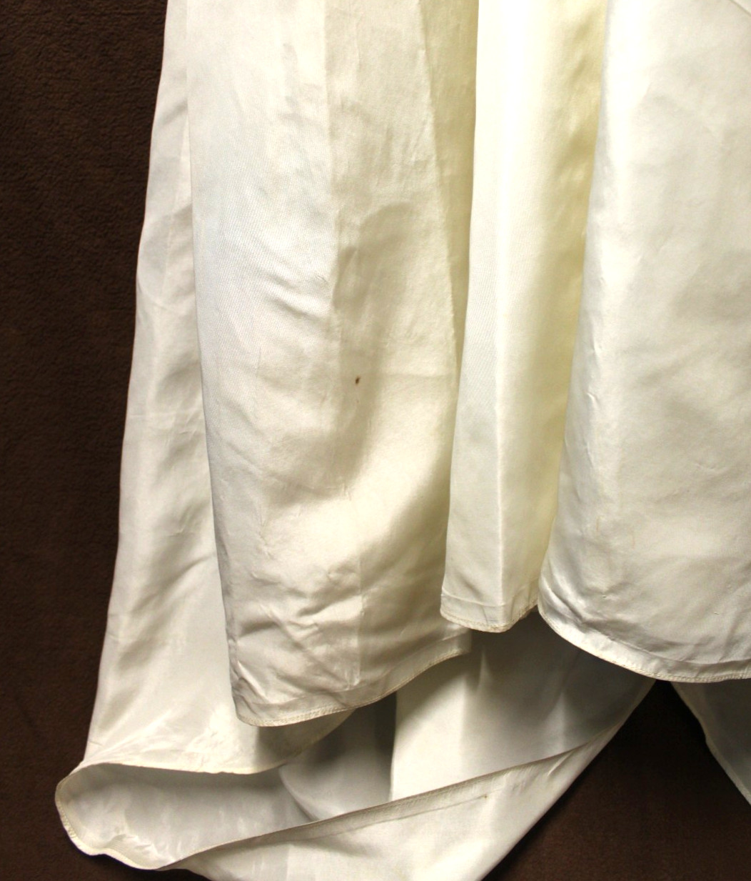 MID-CENTURY IVORY LACE SATIN WEDDING DRESS LONG LACE SLEEVES CHAPEL LNG TRAIN