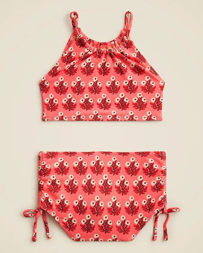 как выглядит Crewcuts Girls Floral Bow Tie 2 Piece Swimsuit, 4, Pink/ Red фото