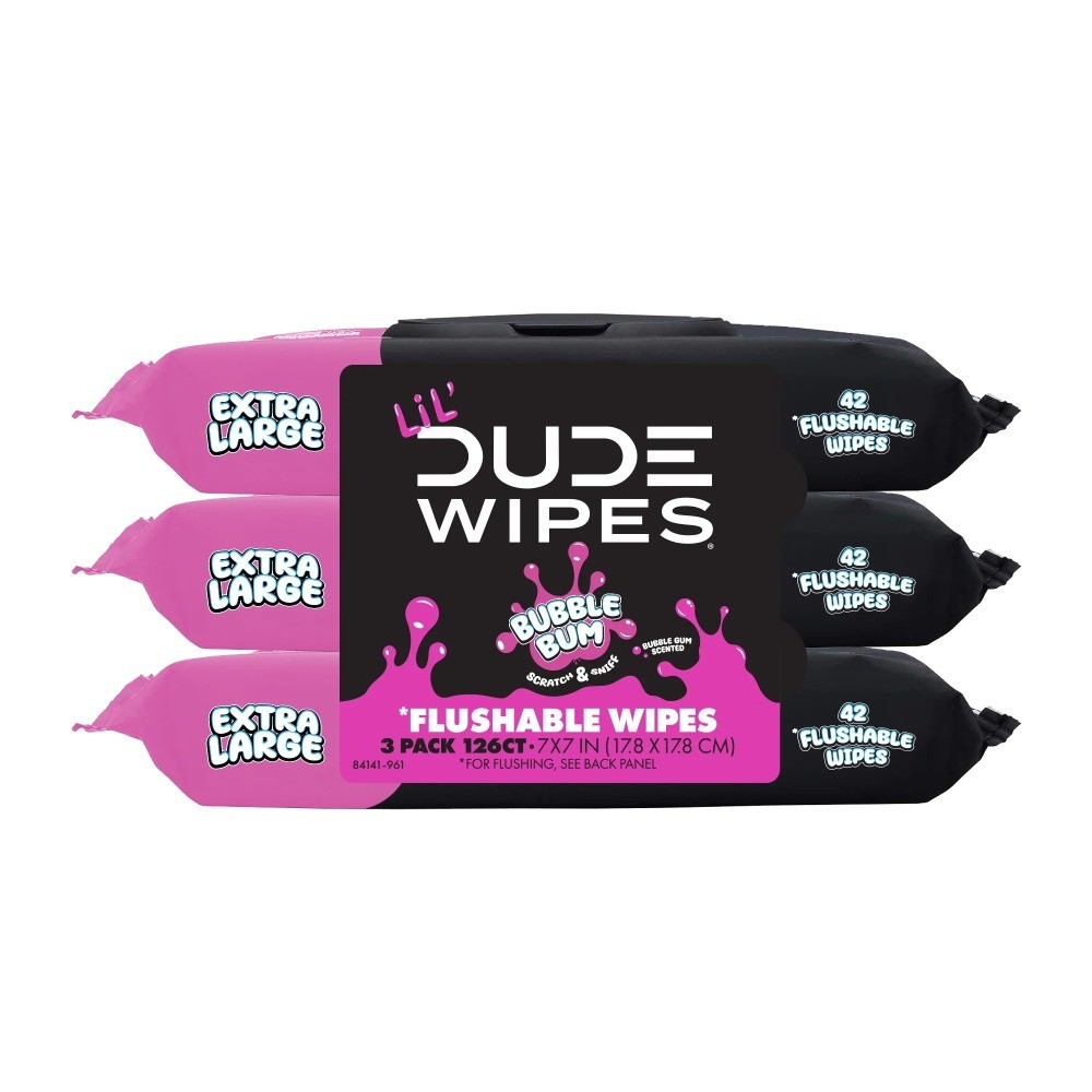 Extra Large Flushable Wet Wipes for Kids, Bubble Gum Scented, 126 Count, 3 Pack