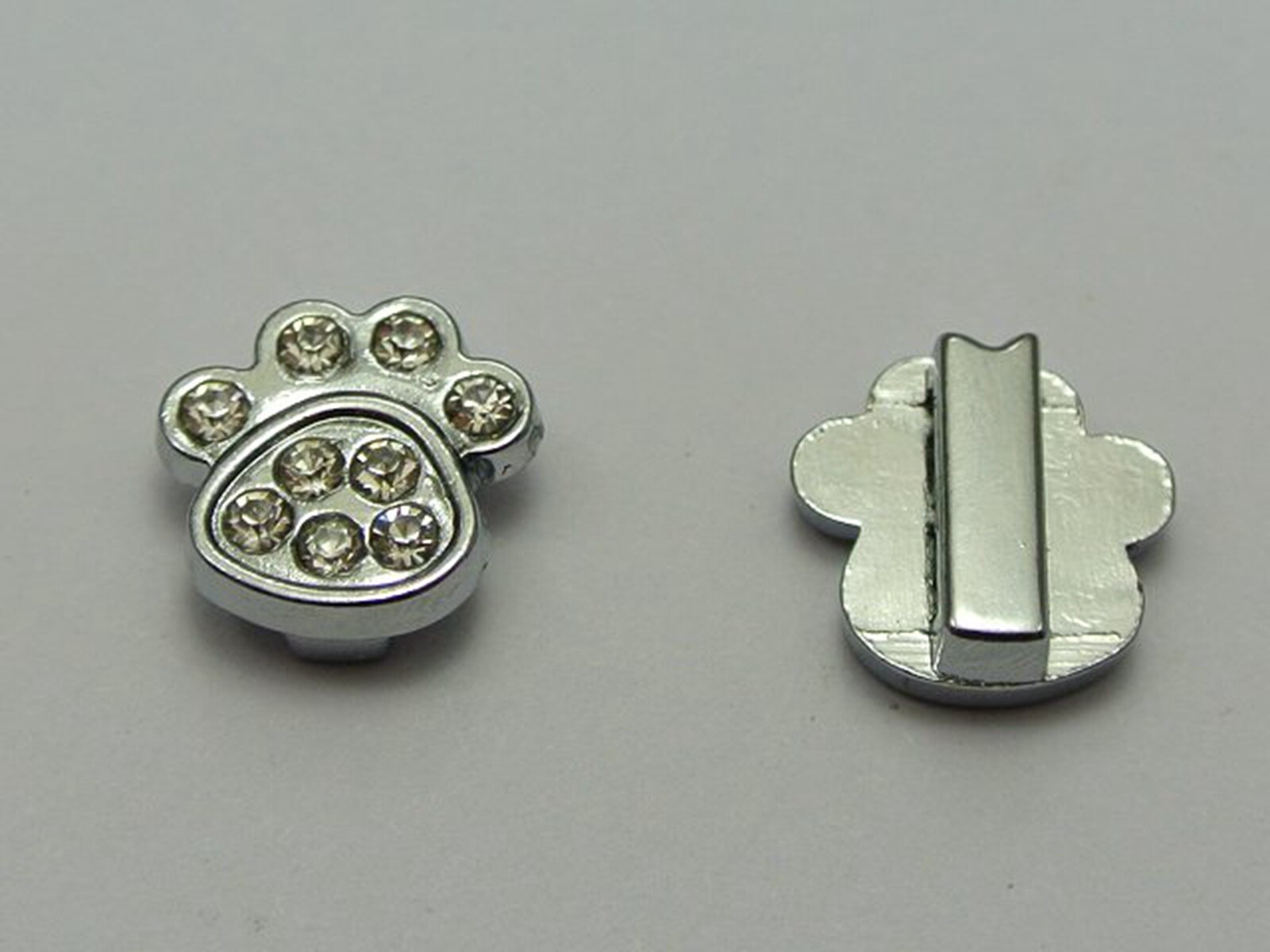 10 Silver Alloy Rhinestone Dog Cat Paw Slide Charms Beads Fit 8mm Wristband s
