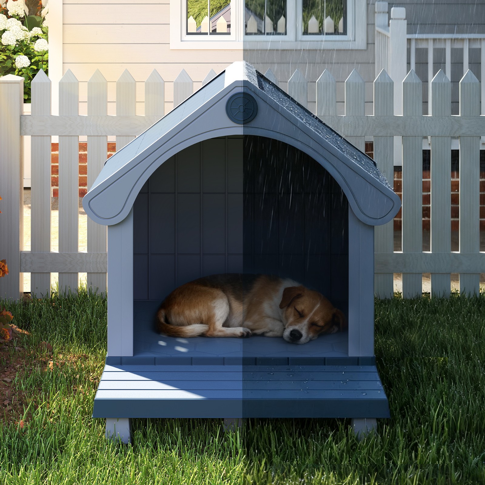 36.6 Elevated Plastic Dog House Weatherproof Pet Kennel for Indoor Outdoor