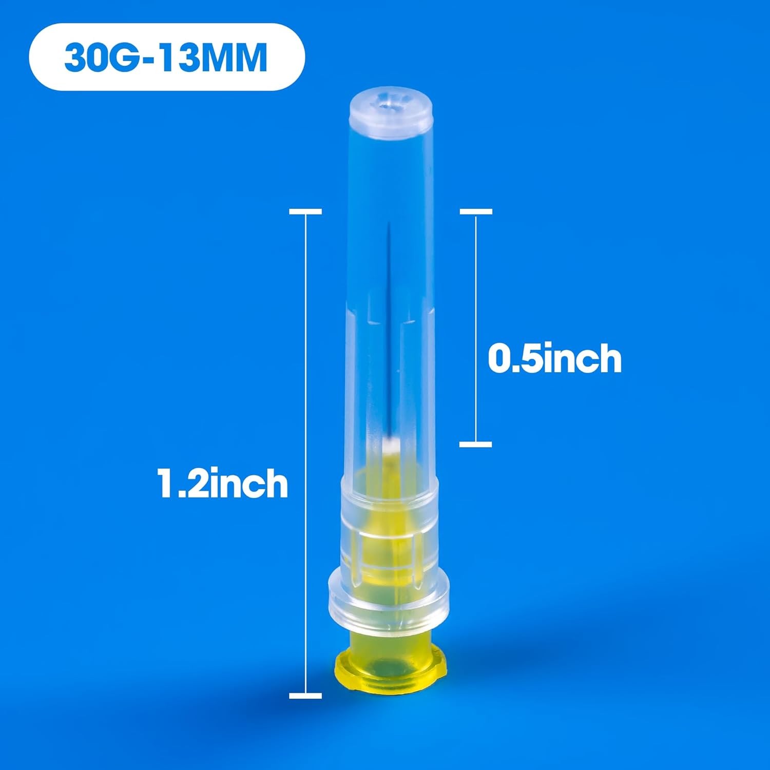 • 100 Pack 30 Ga 1/2 inch Disposable Needles with Caps for 30G