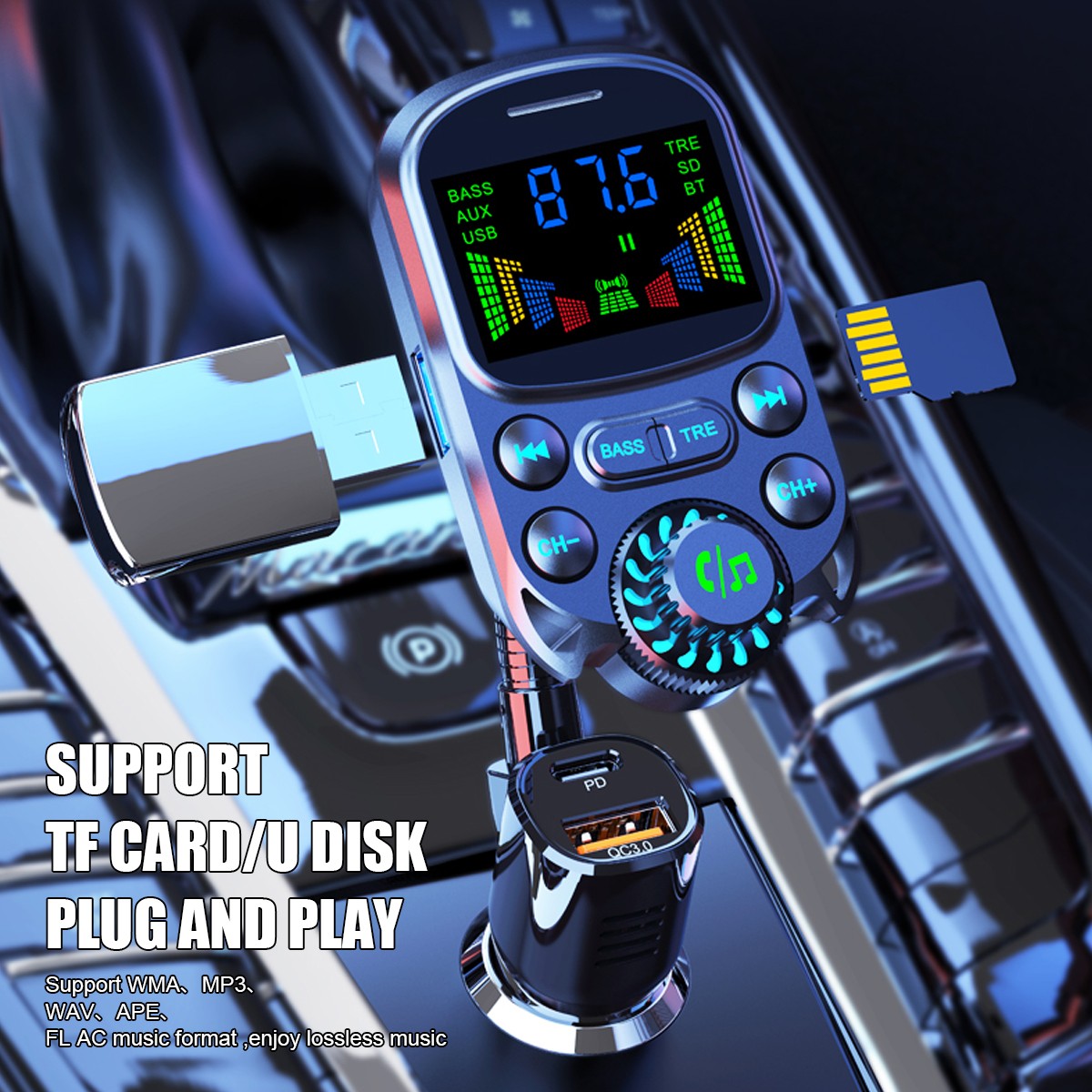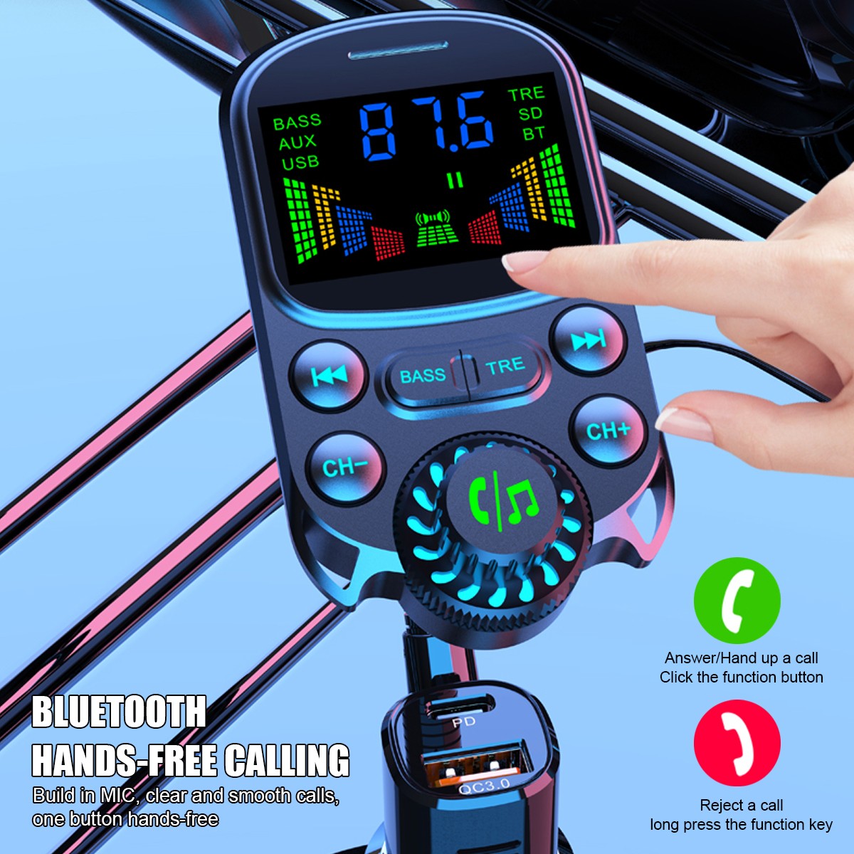Car Bluetooth FM Transmitter Wireless MP3 Player USB PD Fast Car Charger Adapter