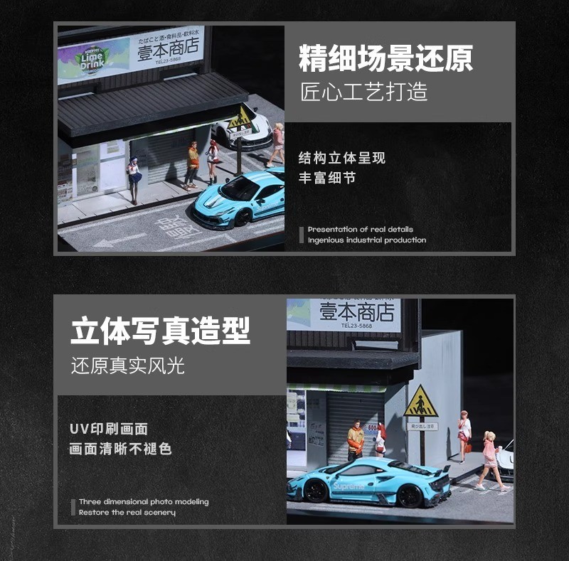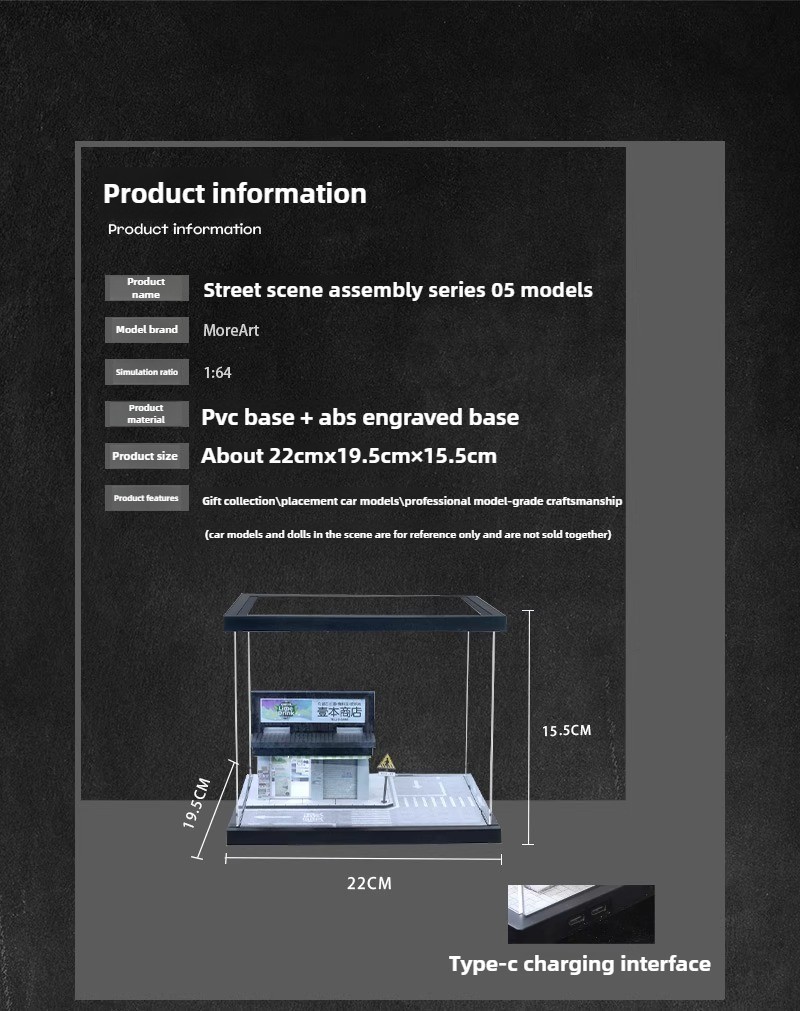 1/64 Diorama Diecast Garage Model LED Lighting Parking Lot Model Display Case US
