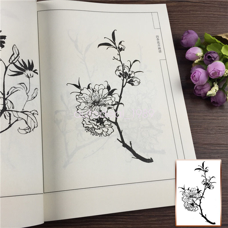 как выглядит Tattoo Flash Art Design Book Line Sheet Reference Four Seasons Flower Sketching фото