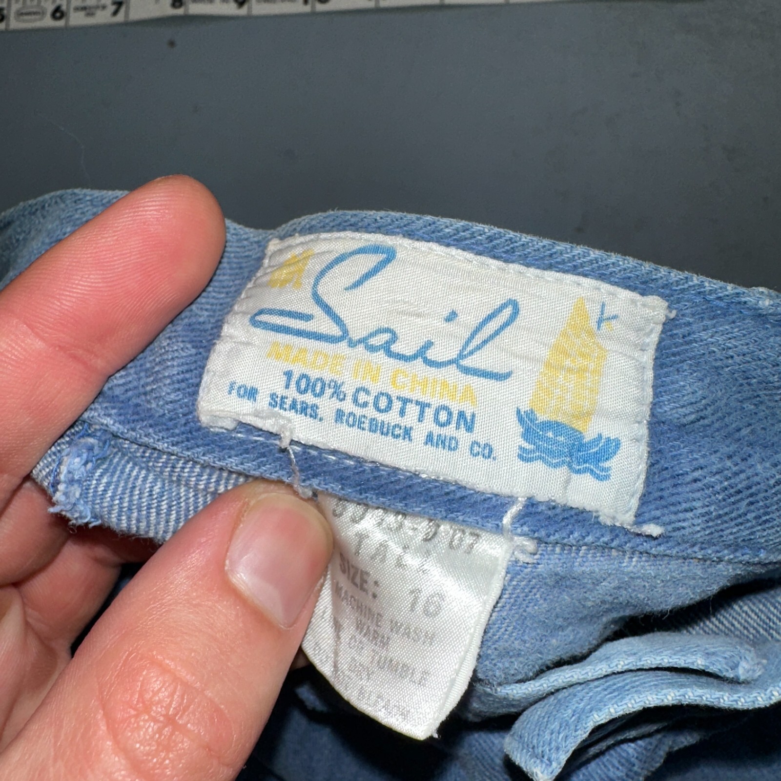 как выглядит VTG 70s Jeans Canvas High Waist Sears Military Style P44 29x25 Capri HBT Rare фото