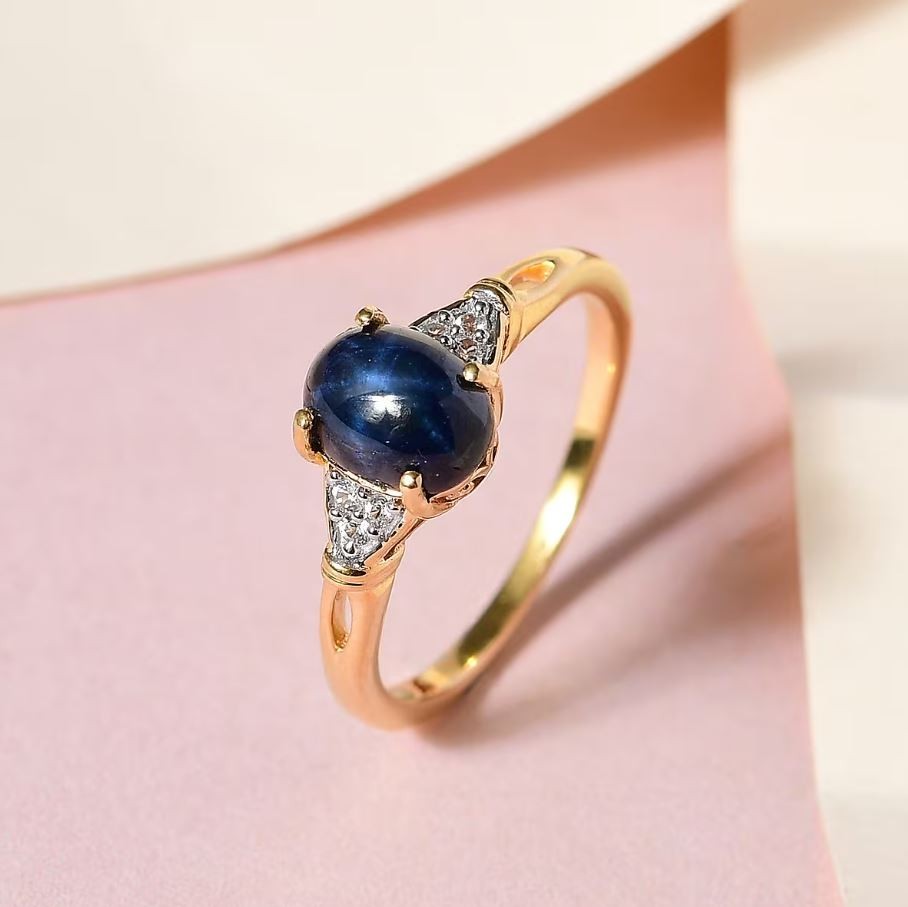 как выглядит Blue Star Sapphire Ring in Gold Vermeil Over 925 Sterling Silver 2.30 ctw фото