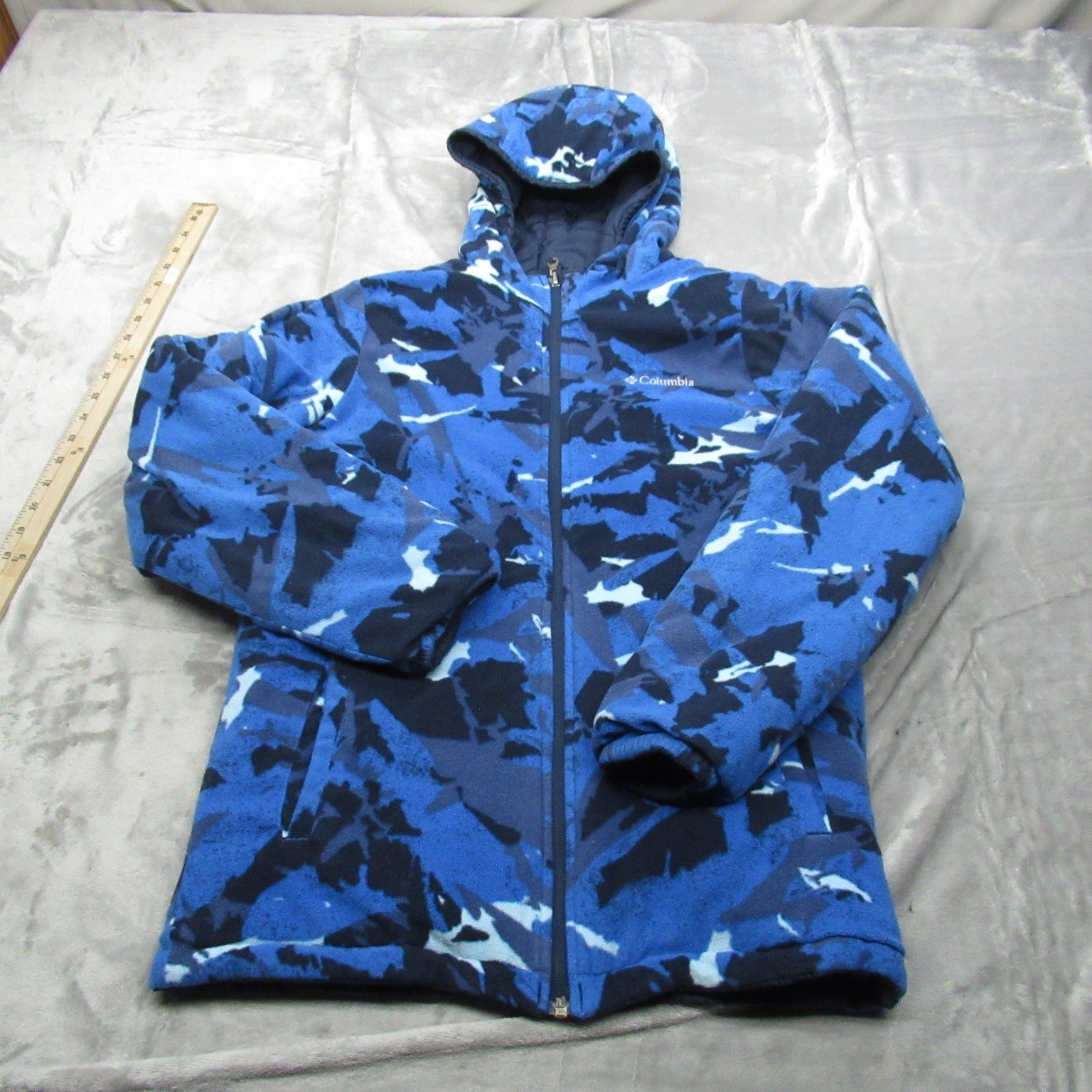 Columbia Jacket Kids XL Blue Camo Reversible Puffer Hooded Insulated Rain Winter