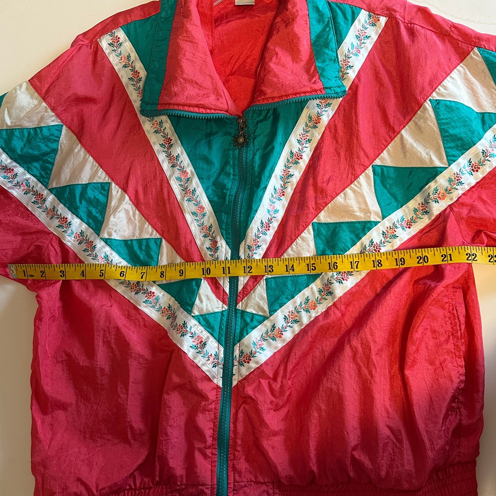 как выглядит Lavon Vintage Track Jacket Womens Medium Pink Teal Geometric Floral 80s 90s фото