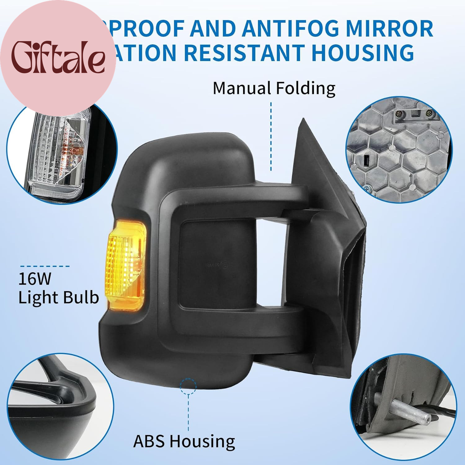 Passenger Right Side Mirror for Dodge Ram Promaster 1500 2500 3500 2014-2021, wi