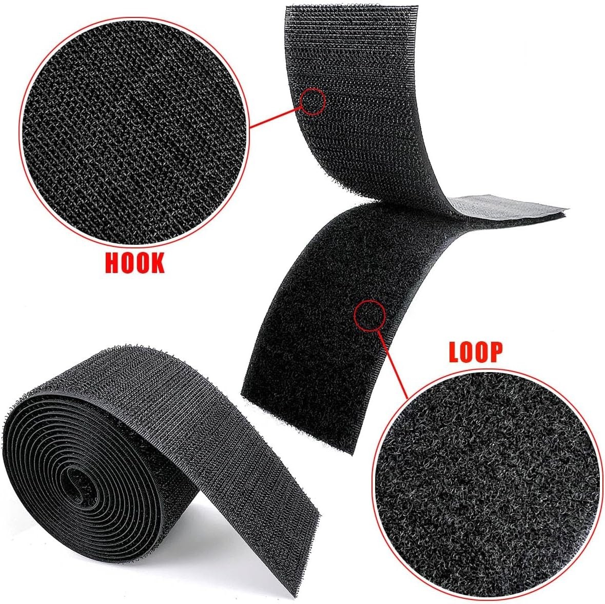2'' Sew On Hook and Loop Strips - Durable Non-Adhesive Fabric Fastener, 6.5 Feet