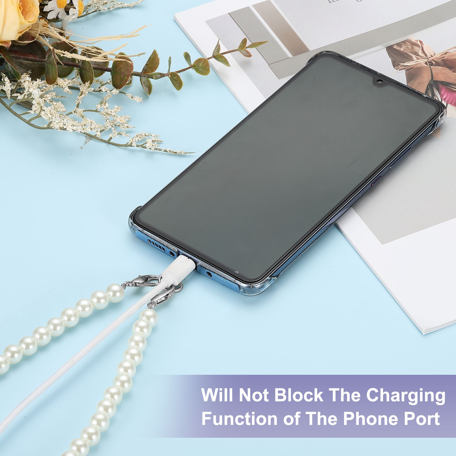 как выглядит 2Pcs Crossbody Phone Strap Lanyard 47" Pearl Chain with Tether Tabs Silver Clasp фото