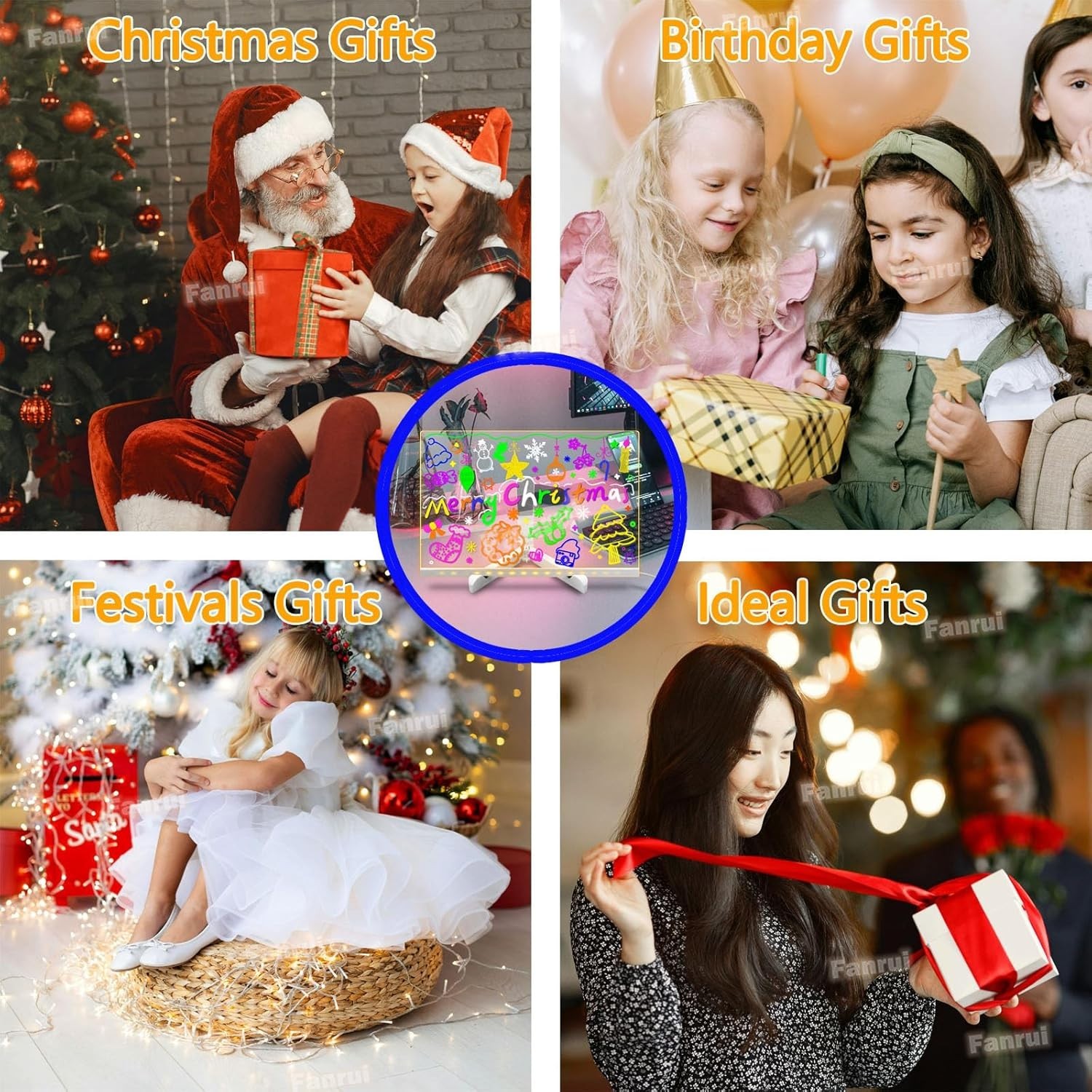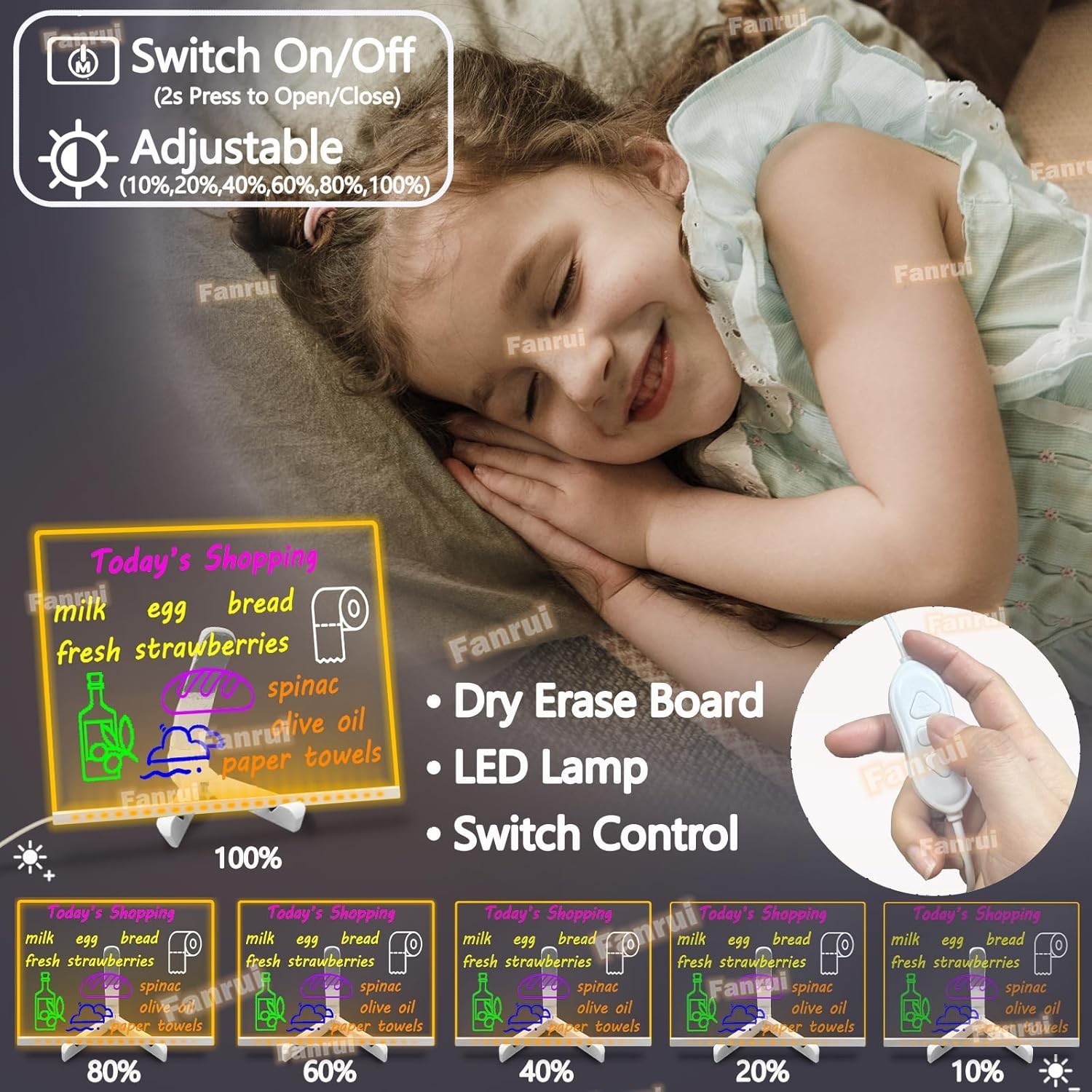 7-Color LED Drawing Board for Kids 11.8x7.9 Acrylic Dry Erase Memo Whiteboard