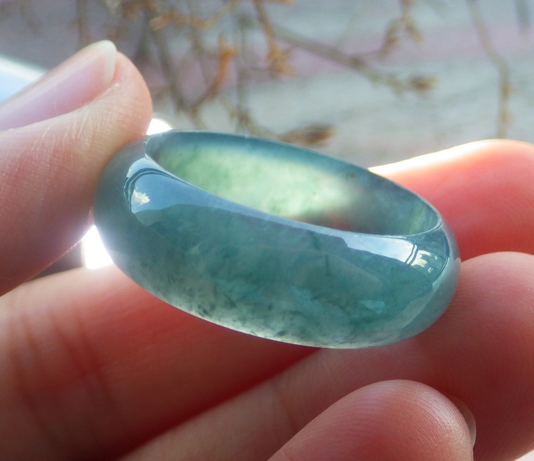 как выглядит Video Certified Green Natural A JADE Jadeite Circle RING USA. 10.5  709797 AS фото