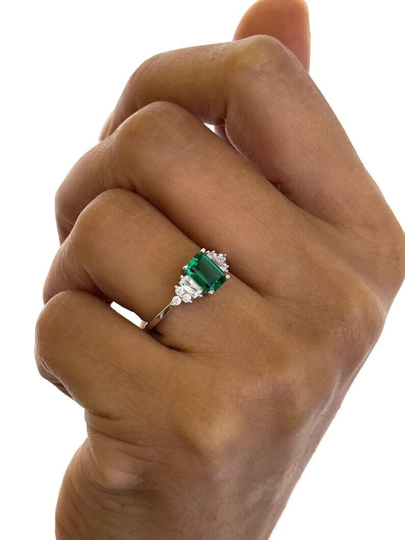 как выглядит 3 Ct Emerald Cut Natural Emerald Diamond Wedding Ring 925 Sterling Silver Size 6 фото