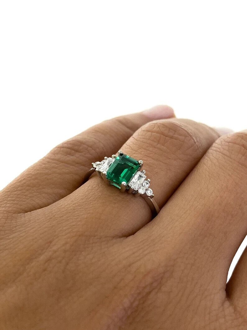 3 Ct Emerald Cut Natural Emerald Diamond Wedding Ring 925 Sterling Silver Size 6