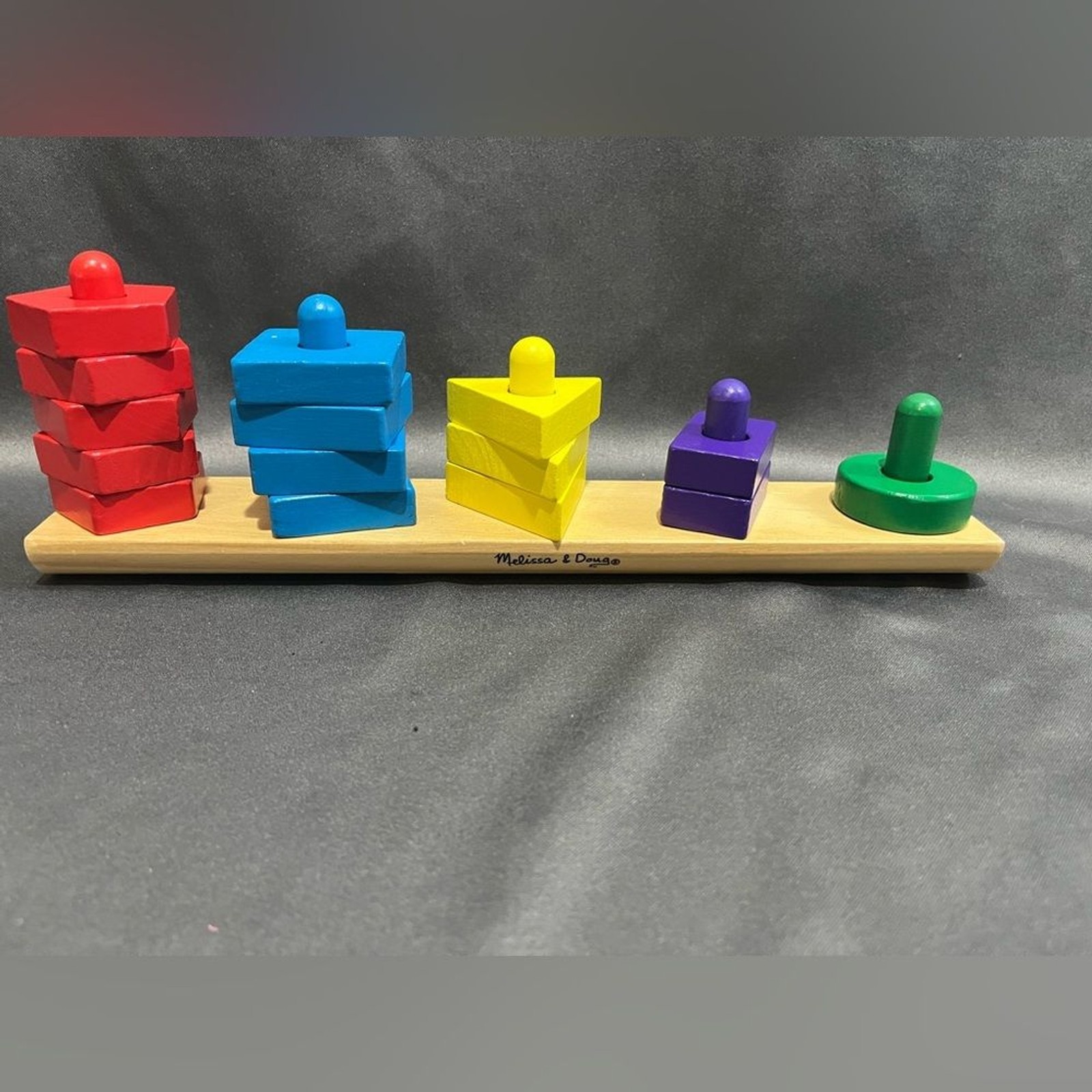 как выглядит Melissa Doug Stack and Sort Board - Wooden Toy With 15 Solid Wood Pieces фото