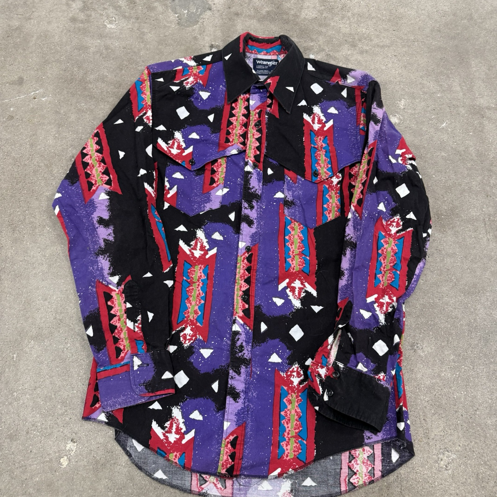 Vintage 90s Wrangler Aztec Pastel Lightning Cowboy Western Cut Shirt 16-34 90s