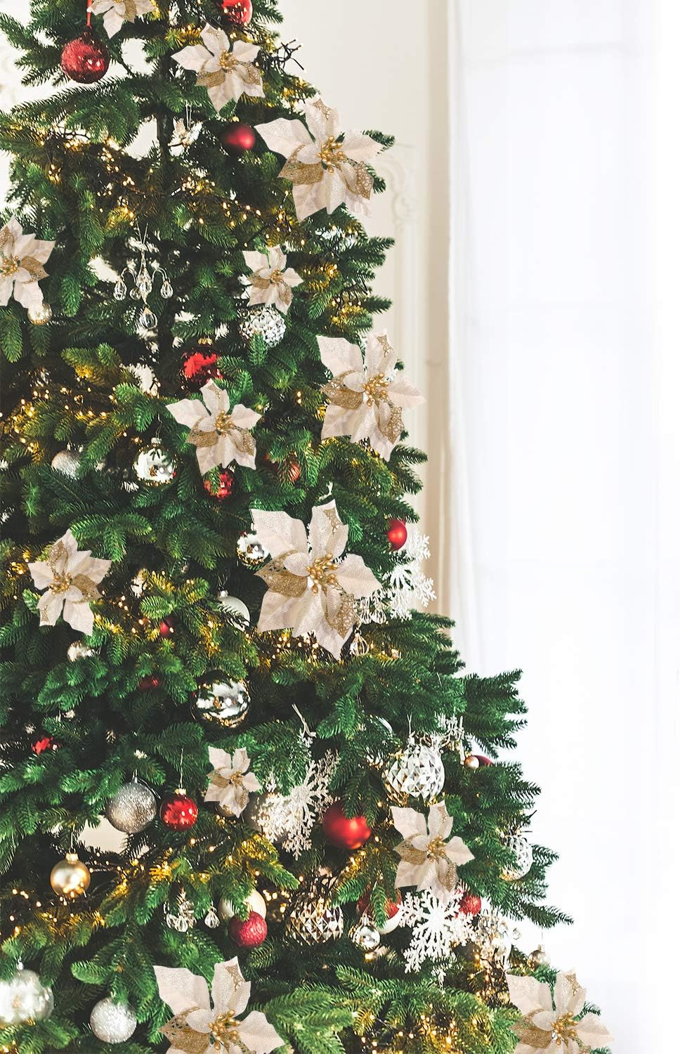 WILLBOND 36 Pieces Christmas Poinsettia Glitter Faux Flowers Christmas Artificia