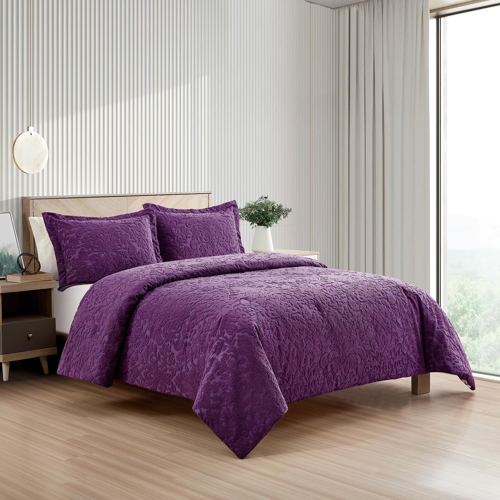 Velvet Jacquard Comforter Set, Velvet Jacquard Face and Brushed Solid Microfi...