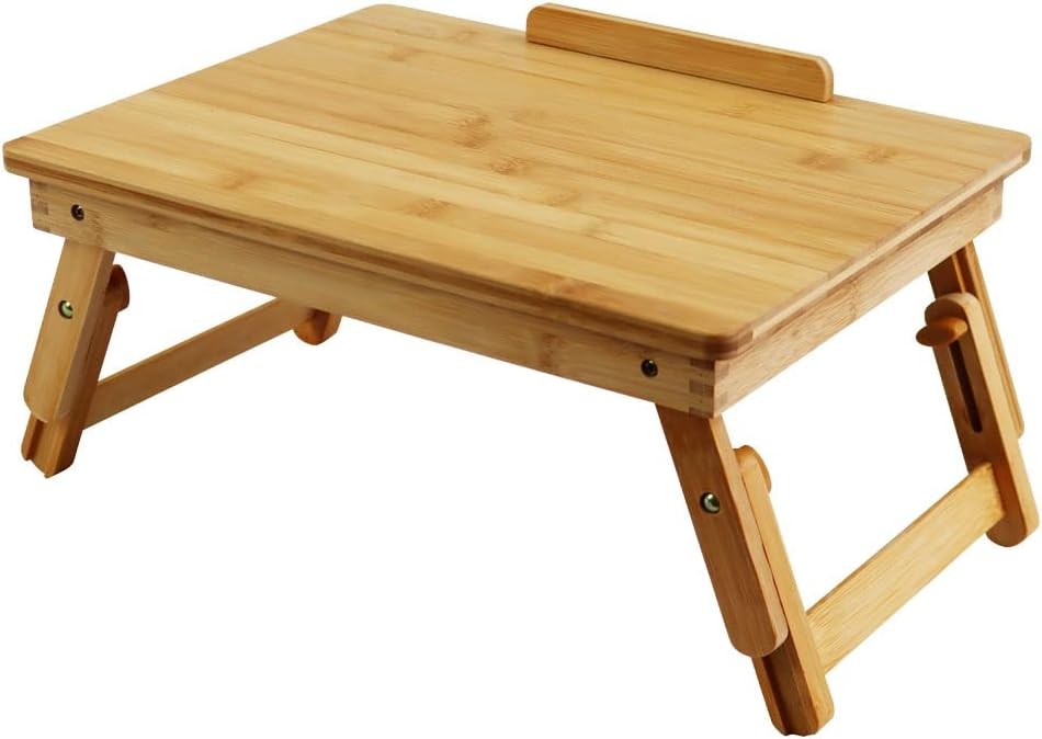 Bamboo Laptop Desk with Folding Legs Tilting Surface Workstation Wood Color