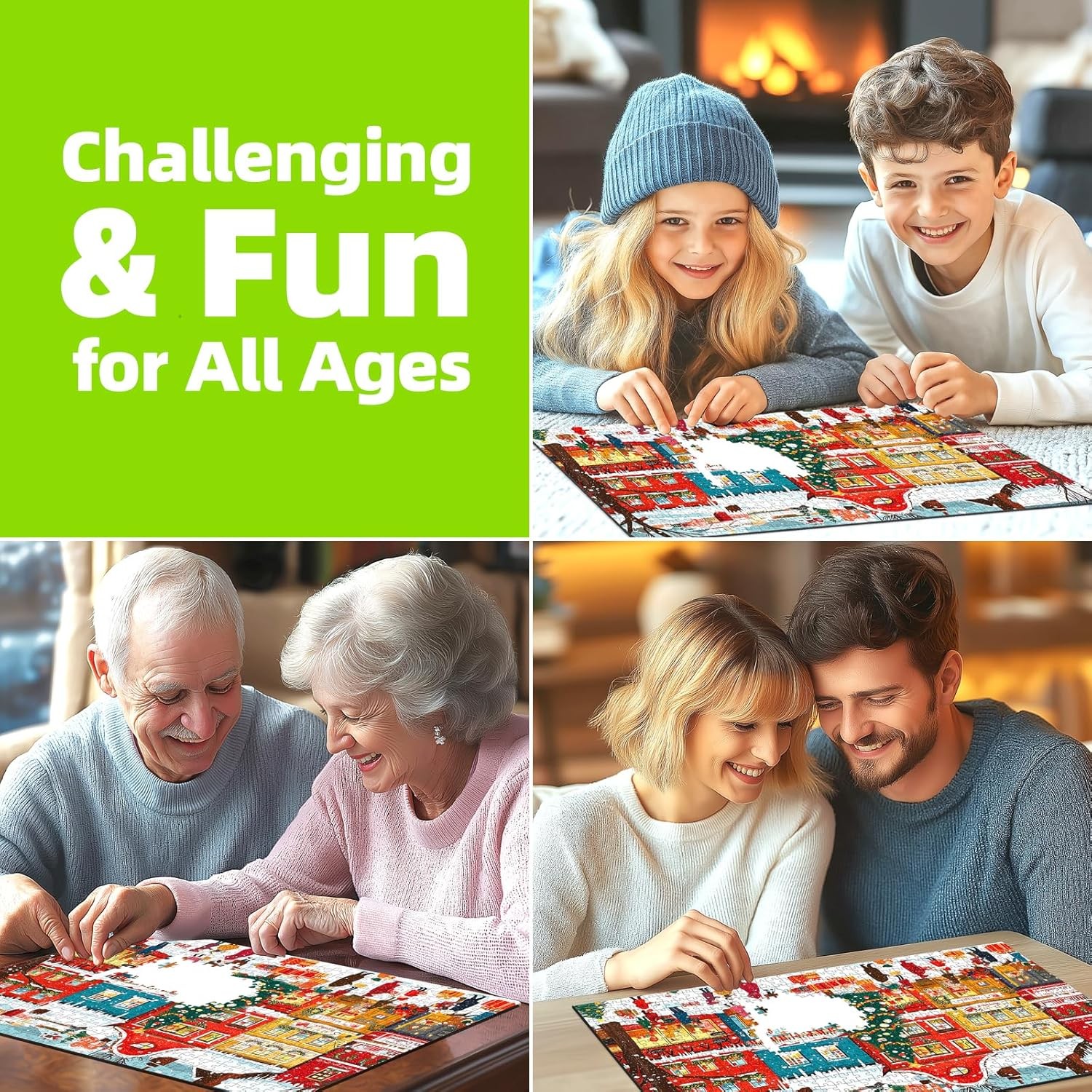 1000 Piece Christmas Snow Town Market Jigsaw Puzzle Winter Holiday Scenery