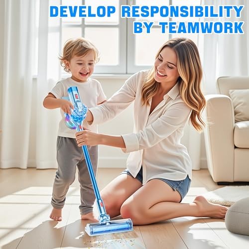 4-in-1 Kids Toy Vacuum That Works with Suction, Electric Toy Toddler Light Blue