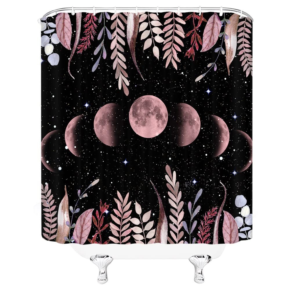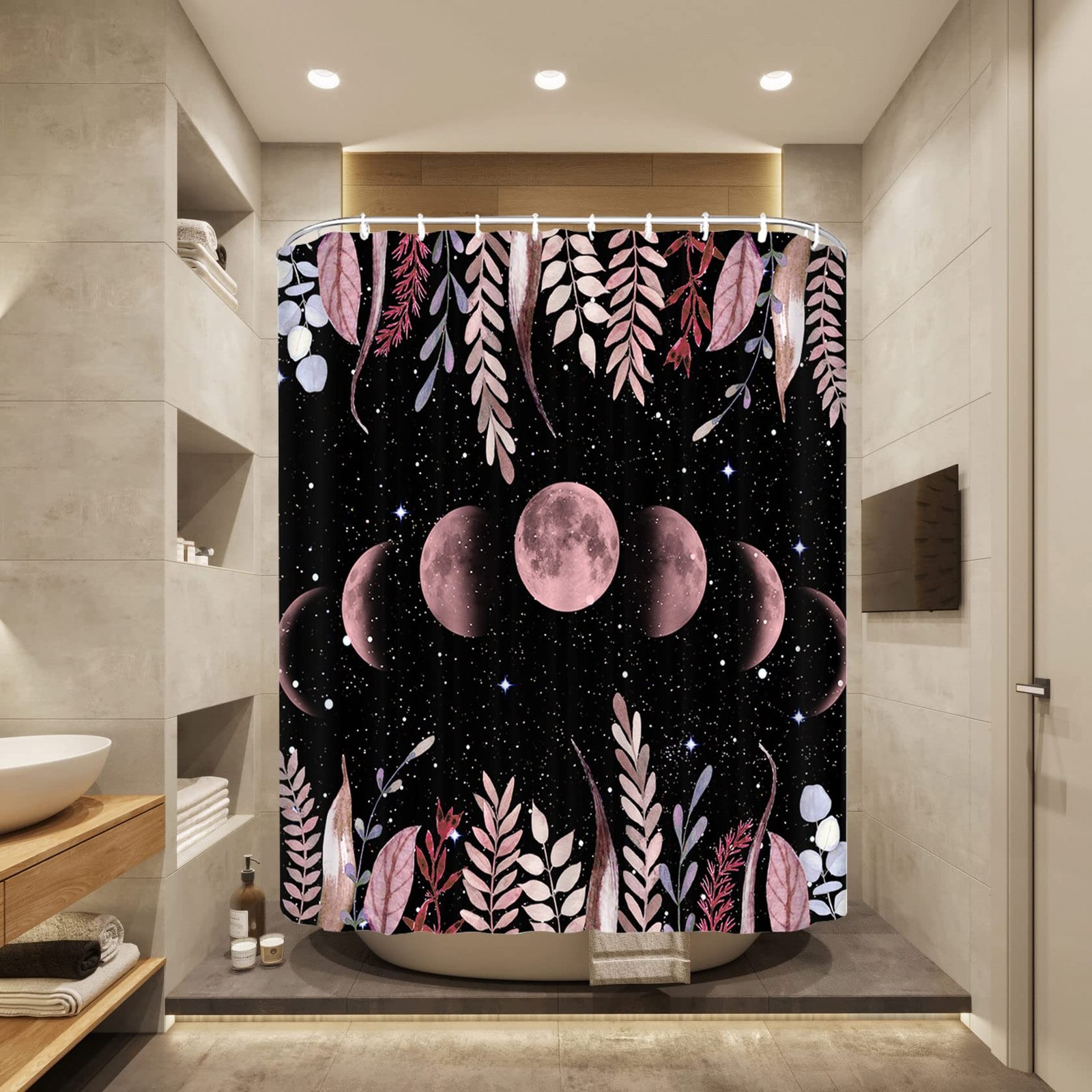 Moon Phase Shower Curtain Moonlit Garden Boho Floral Starry Night Vines Frame...