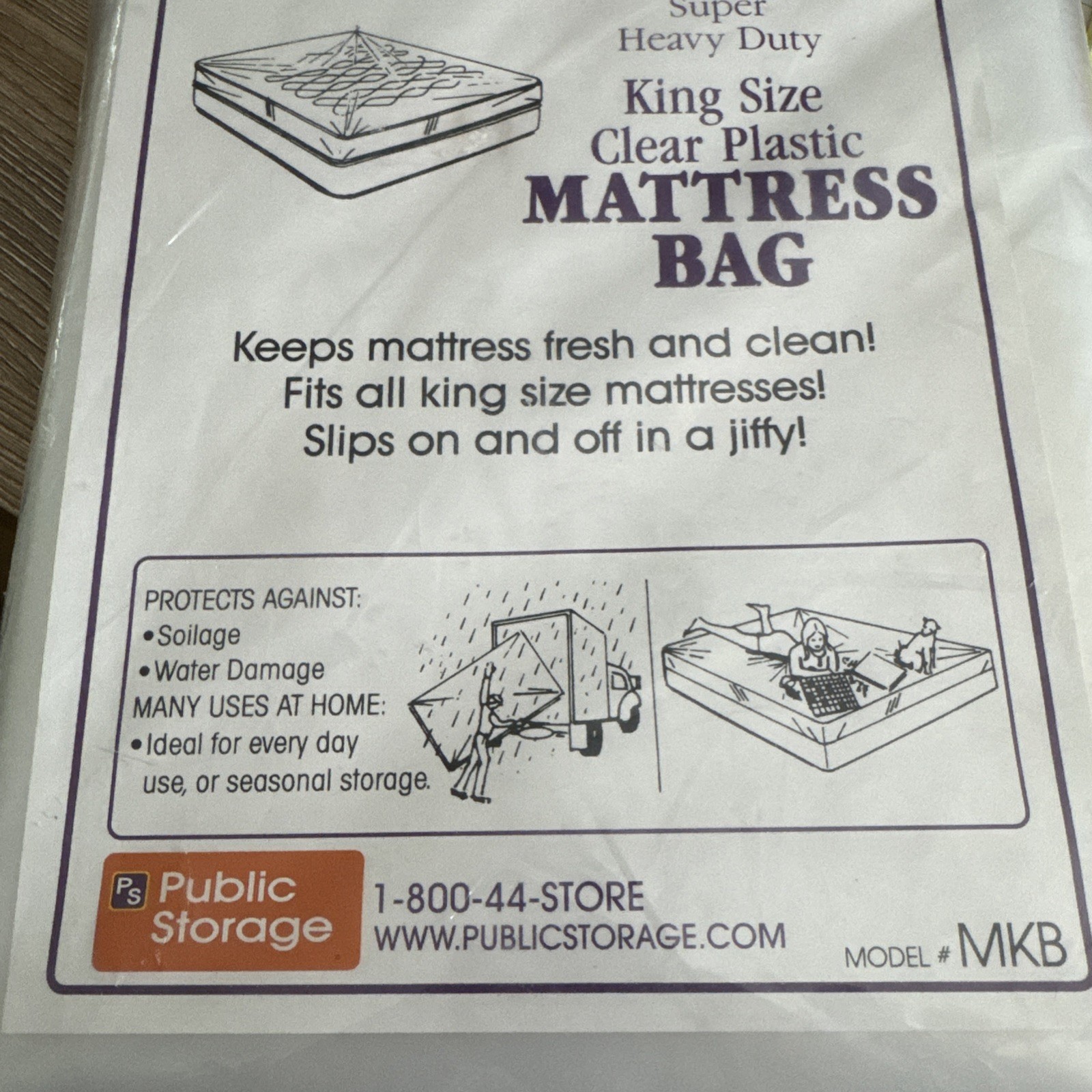 Public Storage Super Heavy Duty King Size Clear Plastic Mattress Bag MKB -New