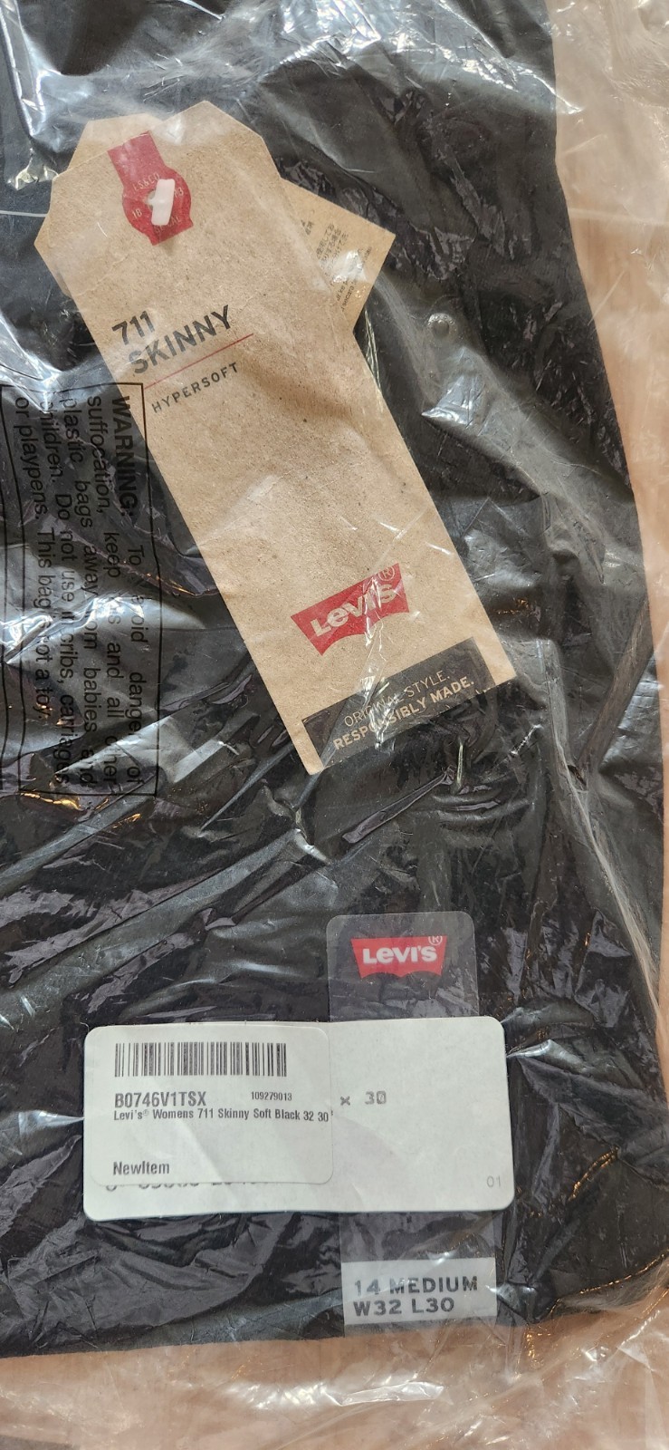 как выглядит Levis 711 Womens Skinny Jeans W32 Black  New in Bag With Tags фото