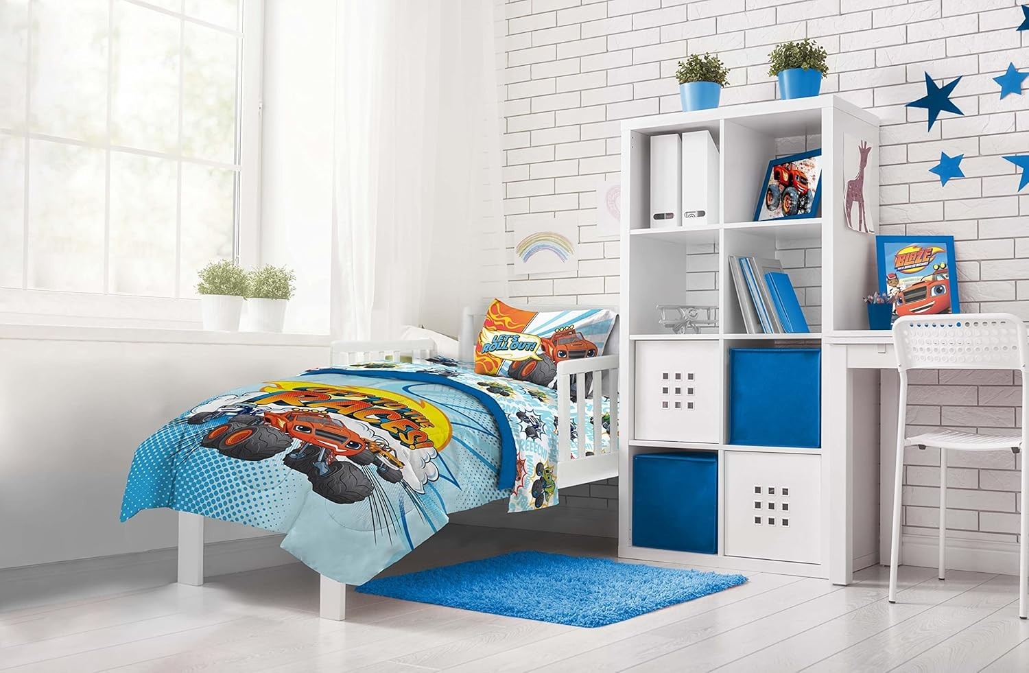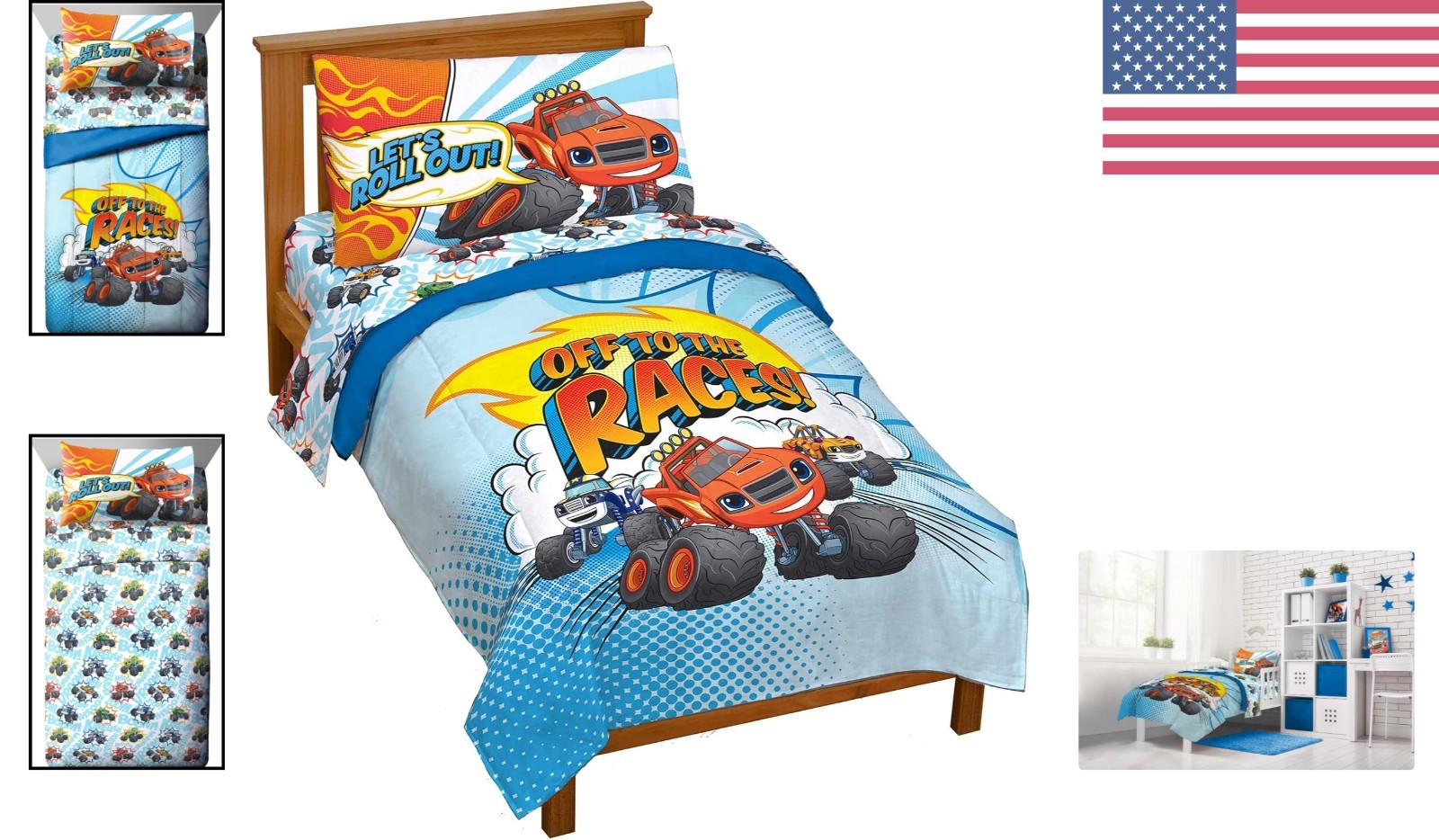 как выглядит Blaze and The Monster Machines 4-Piece Toddler Bed Set - Cozy Microfiber Bedding фото