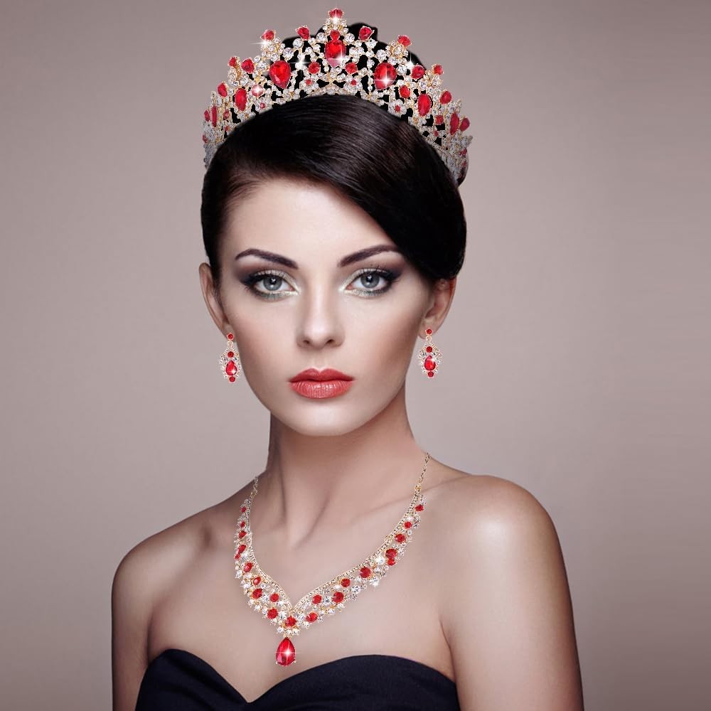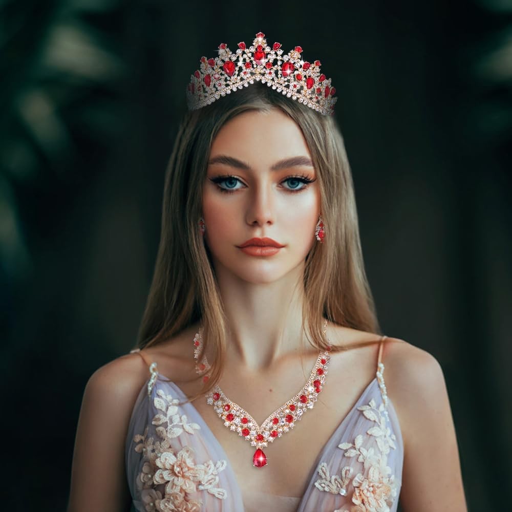 Tiaras and Crowns for Women,Tiaras Earrings Necklace, Crystal Bridal Jewelry Set