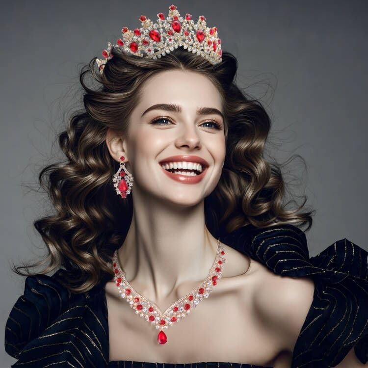 как выглядит Tiaras and Crowns for Women,Tiaras Earrings Necklace, Crystal Bridal Jewelry Set фото