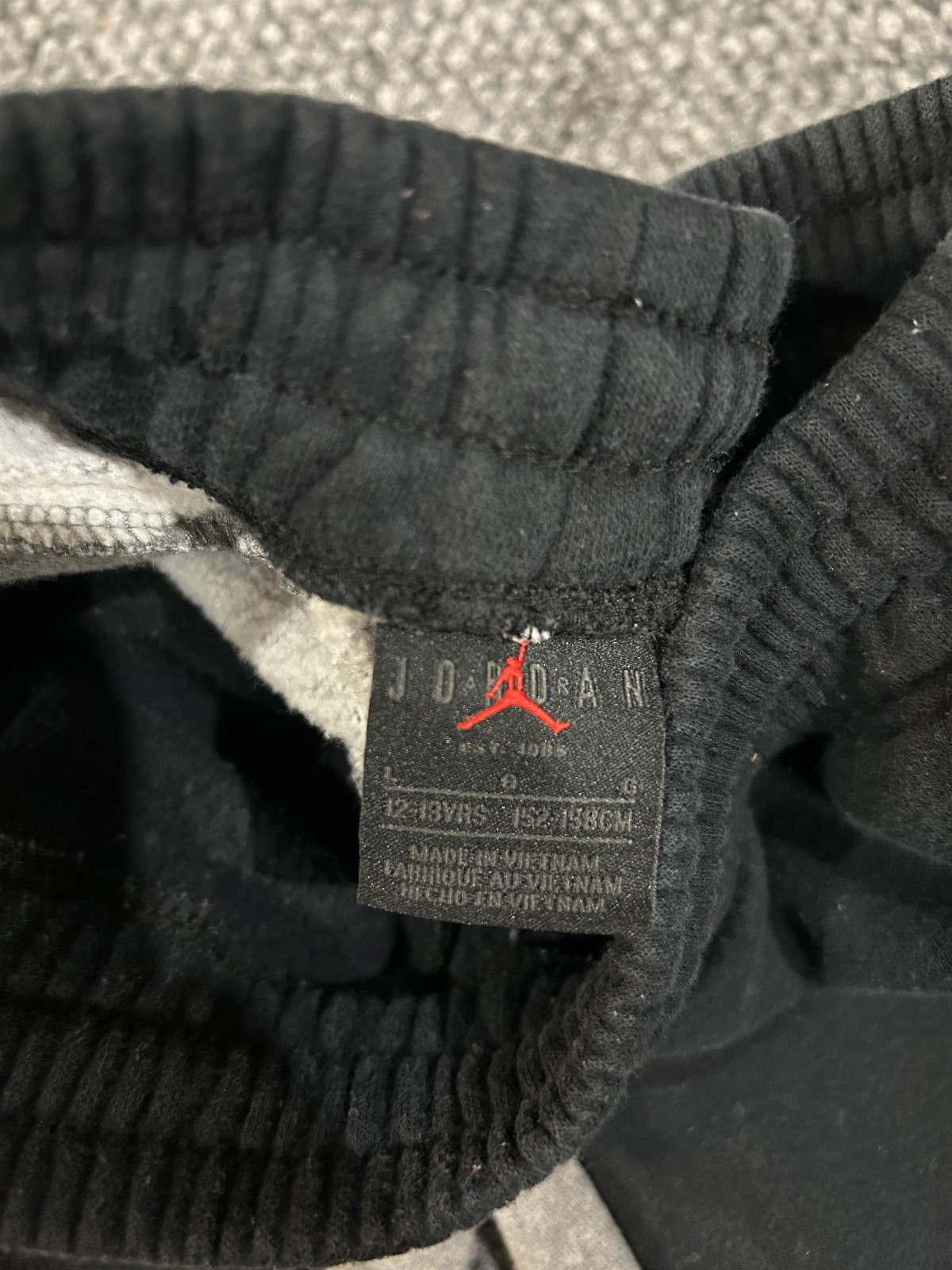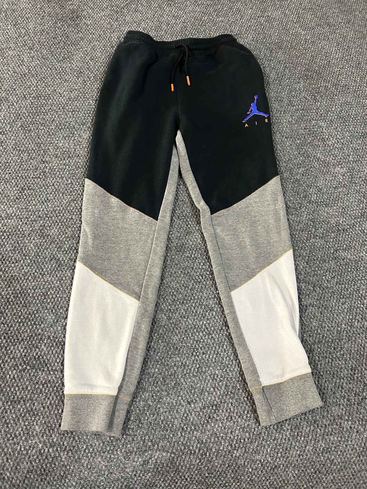 Jordan sweatpants boys large black grey colorblock fleece Air Jumpman
