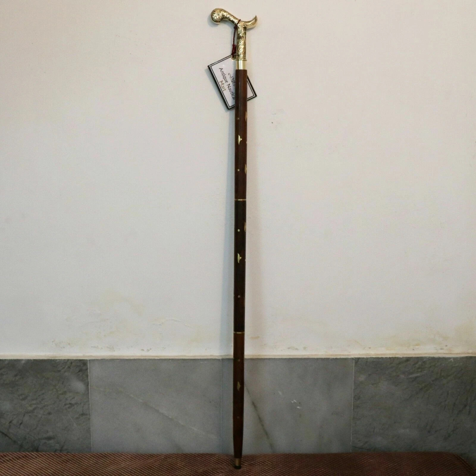как выглядит Vintage Brass Victorian Derby Head Handle Wooden Antique Walking Stick Cane Gift фото