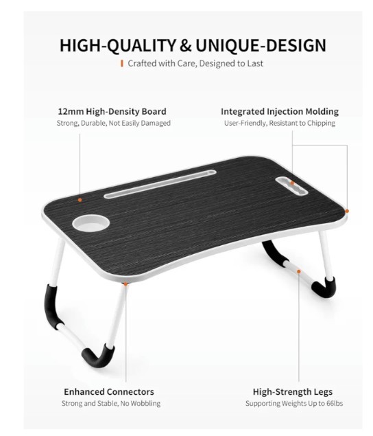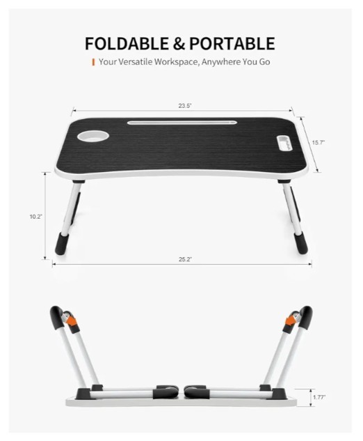 Foldable Laptop Table with Cup Holder Tablet Slot - Portable Lap Desk