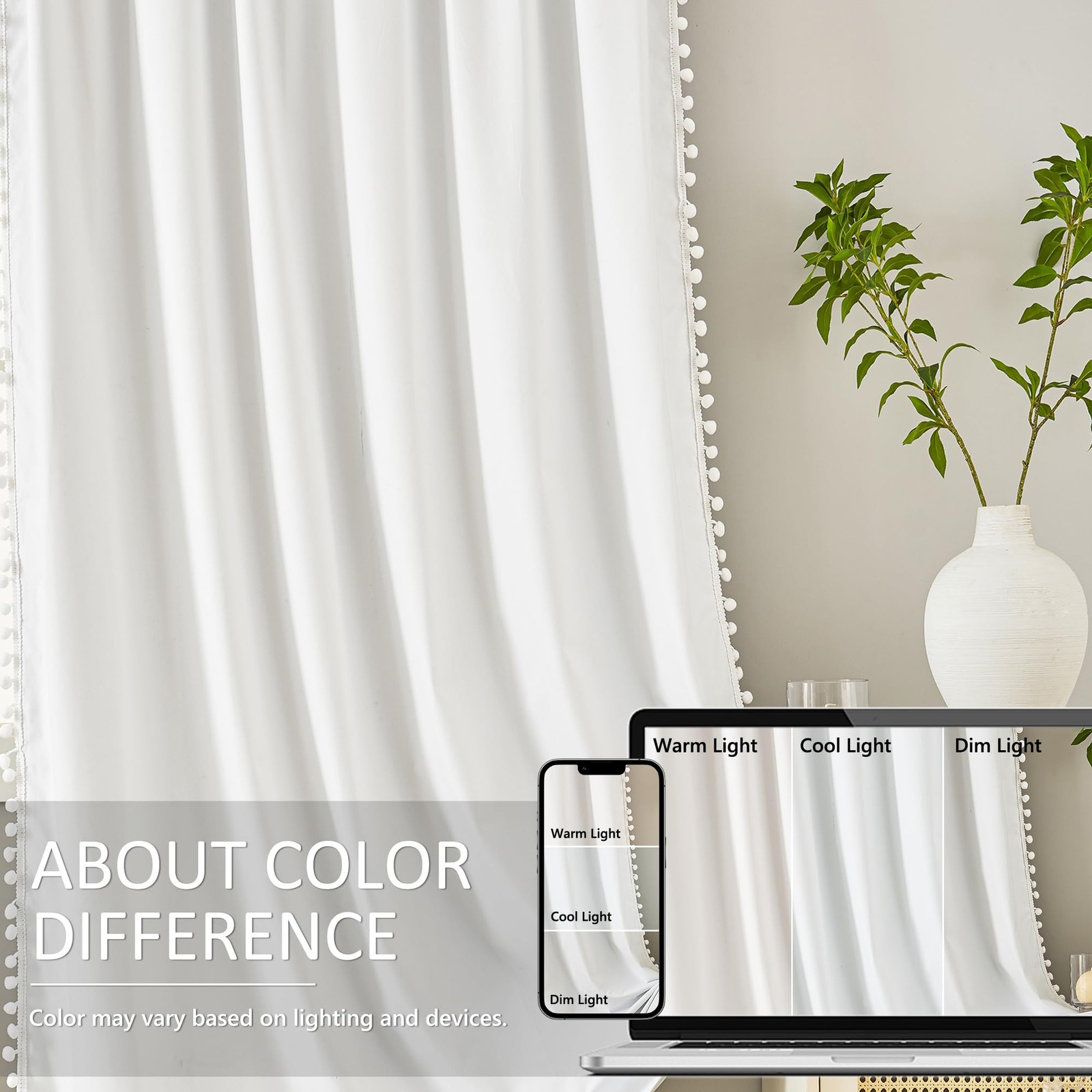 White Blackout Curtains for Living Room Bedroom 84inch Long Pom Pom Curtain P...