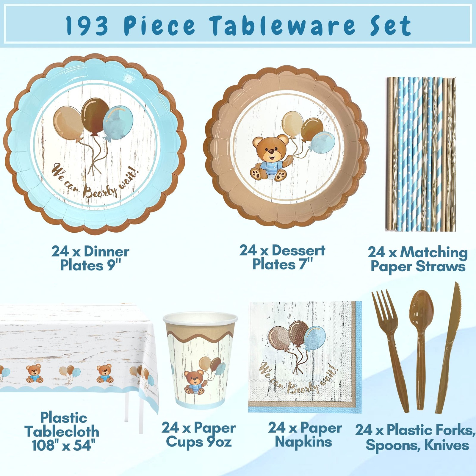 193 Pc Teddy Bear Baby Shower Decorations Tableware - We Can Bearly Wait Tedd...