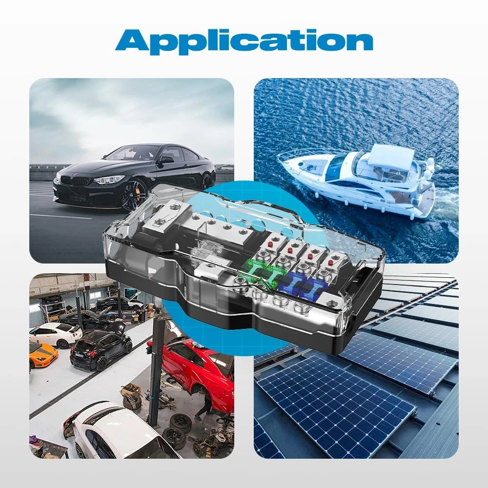 Fused Power Distribution Block Car Audio 4 Way Midi Mini-Anl Fuse Block 12V ...