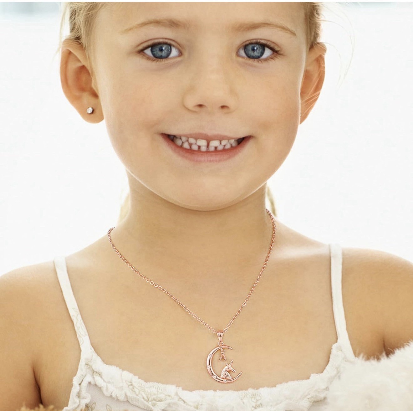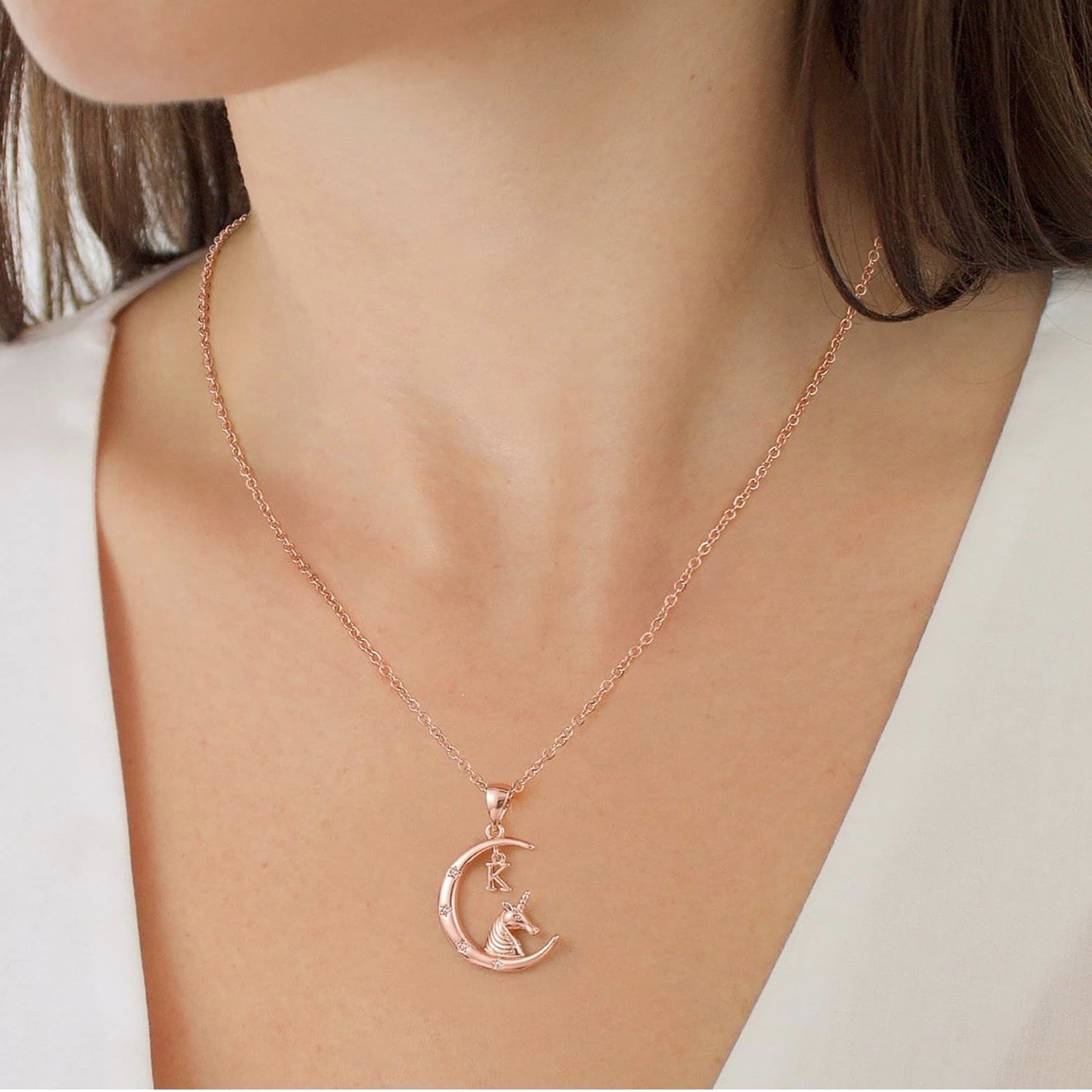 Unicorn Moon Necklace Initial M Rose Gold Plated CZ Girls Jewelry Gift